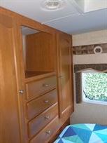 This RV has adjustable lumbar support for the cockpit seats, making long trips especially comfortable. The seats have breathable micro-fibre inserts that are a welcome addition on hot summer days.