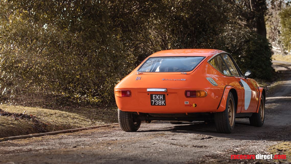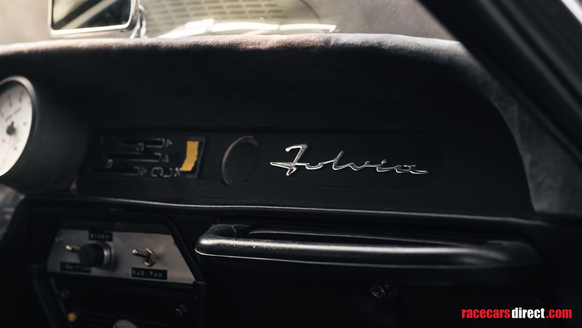 This beautiful 1600 Fulvia Sport Zagato has a full race ‘Variante 1016’ spec engine running twin Weber 40s producing plenty of power at the wheels. The suspension has been upgraded to race spec which has both stiffened and lowered the car giving minimum roll in corners and huge grip when paired with the 8” slicks and semi slicks and fantasticly controlable movement on the road tyres.