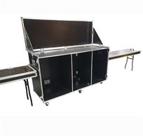 Triple fridge hospitality flight case with stand alone / twin side tables.