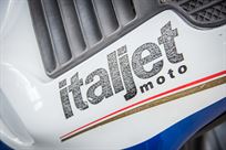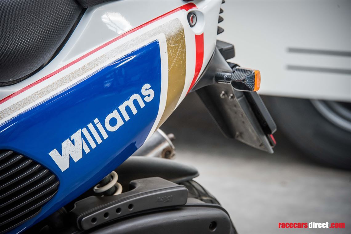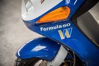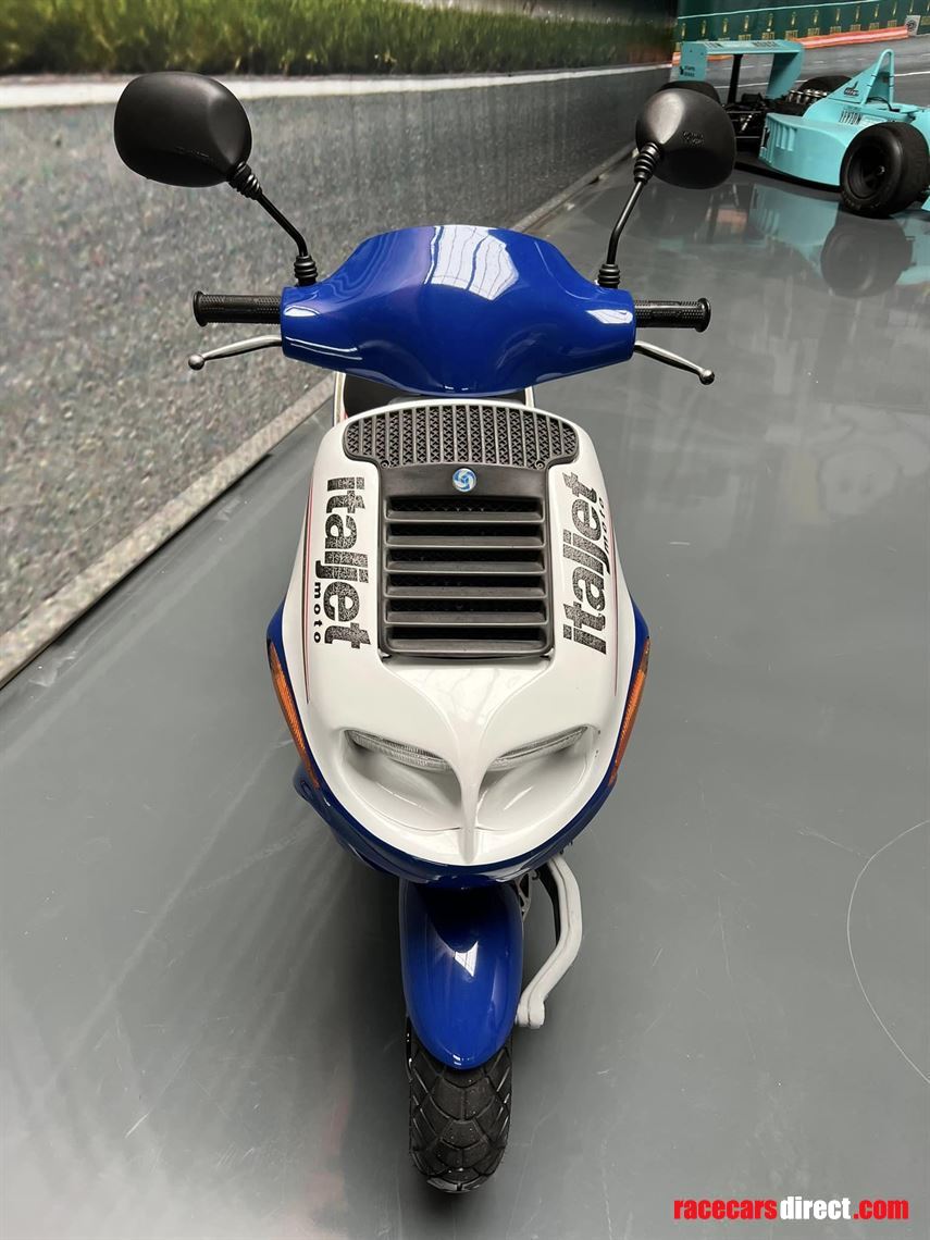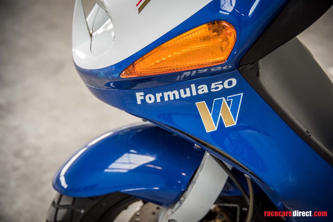 This scooter is an official Rothmans Williams Formula 1 Italjet 2 stroke team scooter, which was produced in limited edition with a total of only 500 units. The scooter was designed as a tribute to the Williams Formula 1 team that was sponsored by Rothmans in the past.
