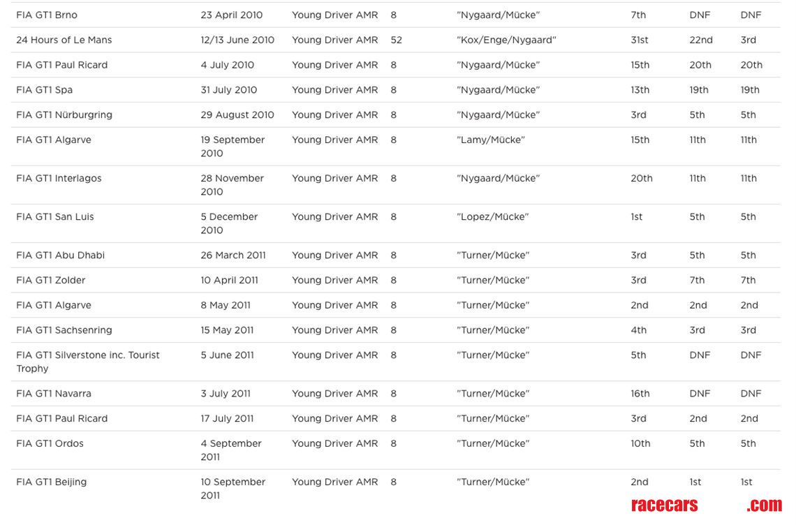 - Driven to 3rd in the GT1 class and 22nd overall at the 2010 24 Hours of Le Mans