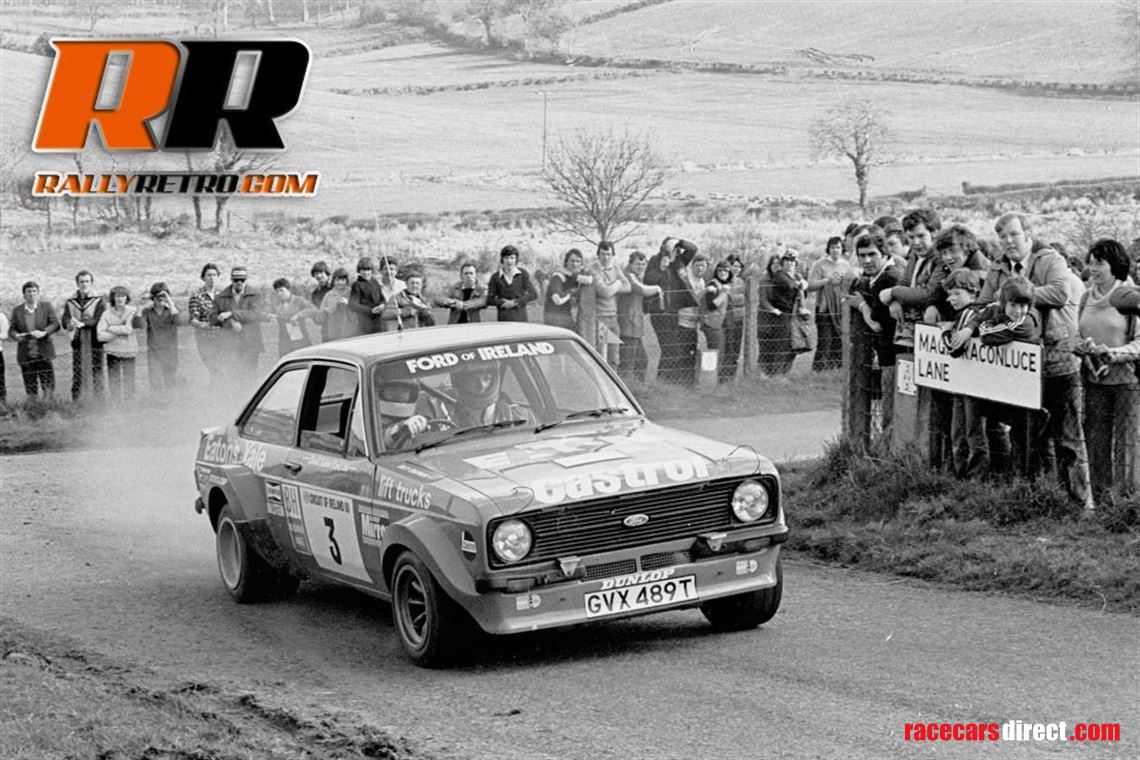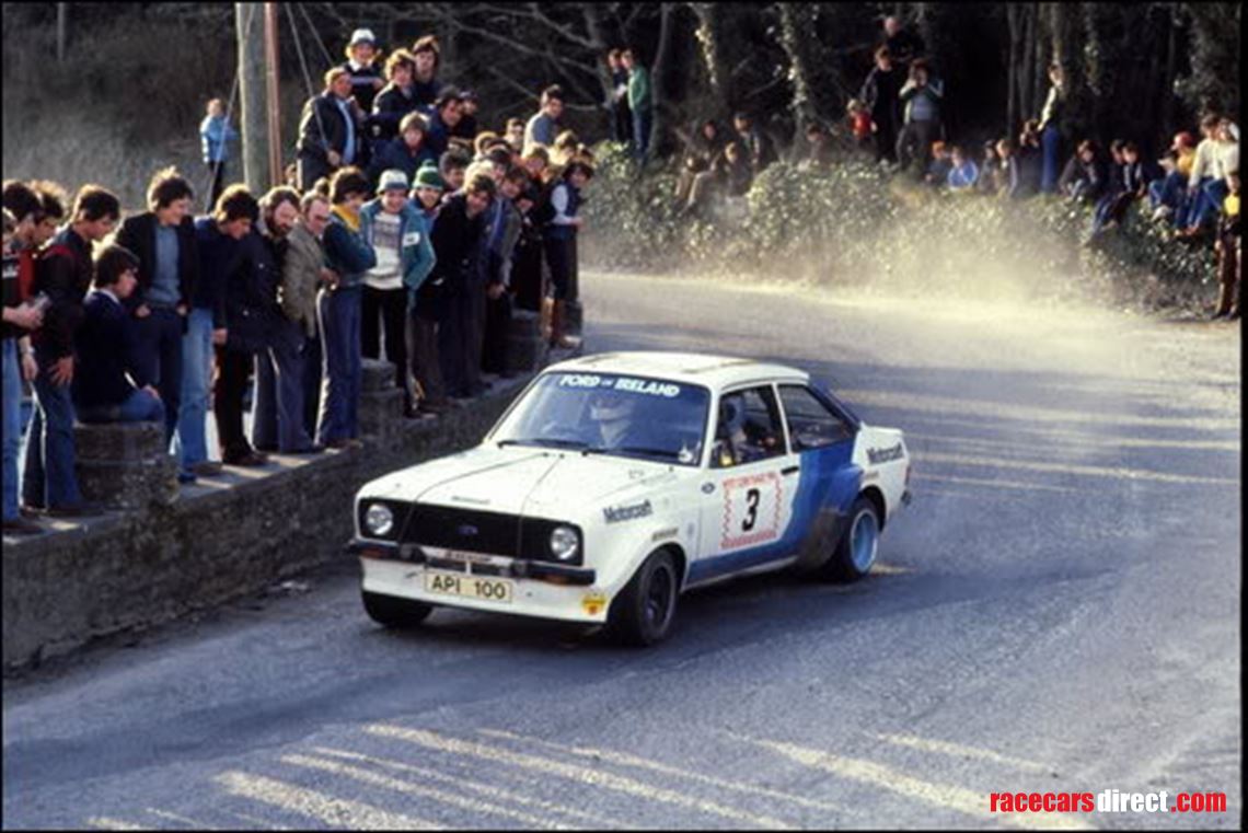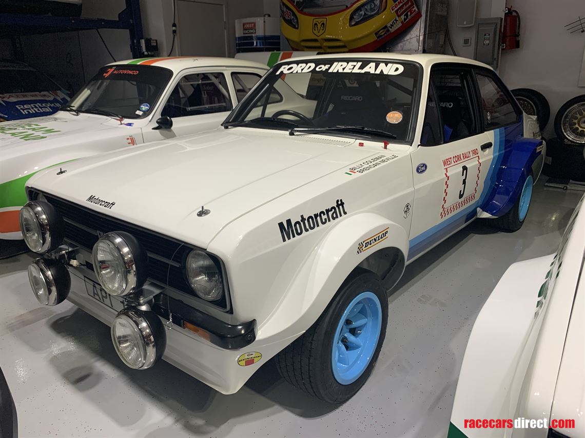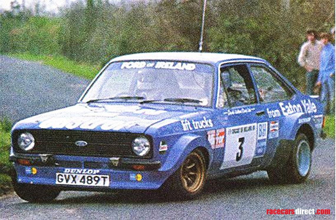 Escort RS GVX 489T. This is one of the three “Monte – Tarmac Specials” built by Ford’s Motorsport Division based in Boreham London in 1979 and is the only right hand drive version ever made.The car was used by Russell Brookes on the British Championship in ’79 where he won the Manx Rally. before Billy Coleman took the car to Ireland, when it was later driven by the late Bertie Fisher as well as Vincent Bonner.