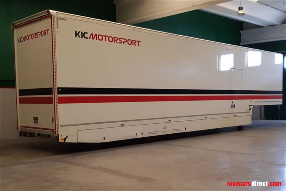 2017 race trailer is immediately free. Has been used by KIC MOTORSPORT's in FRECA. Good trailer for 3 singleseater or 2 GT cars. Trailer is in good condition. Adjustable 2nd floor, 2oookg lift. Nice office, lot of storage space, big screen an airconditioning. Two radio masts, two side doors, drawers and cabins. Two sideboxs under floor. Both side are awnings, one side it's 9 m wide and other it's 4,5 m wide. Very good tyres, trailer manufacturer is Racetrailer.com and only one owner.
