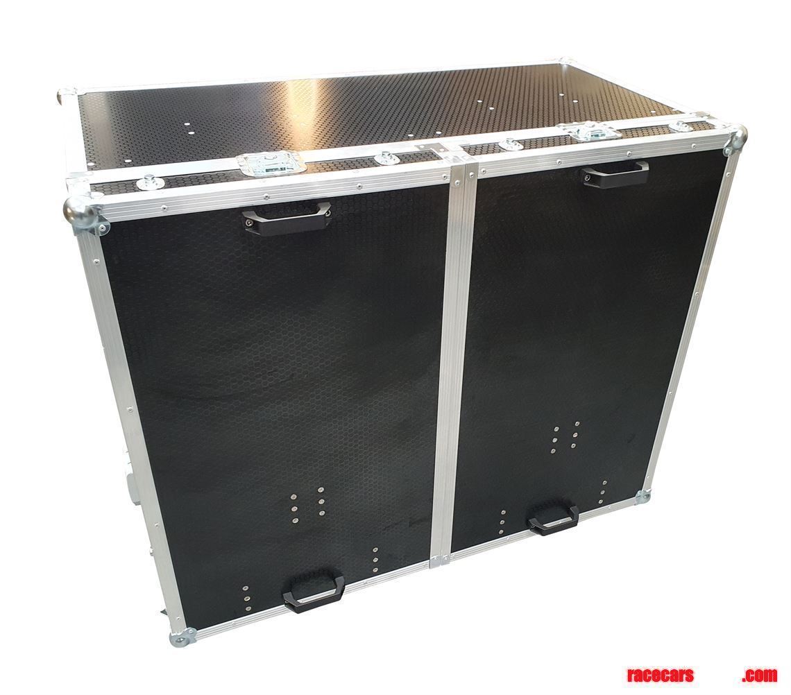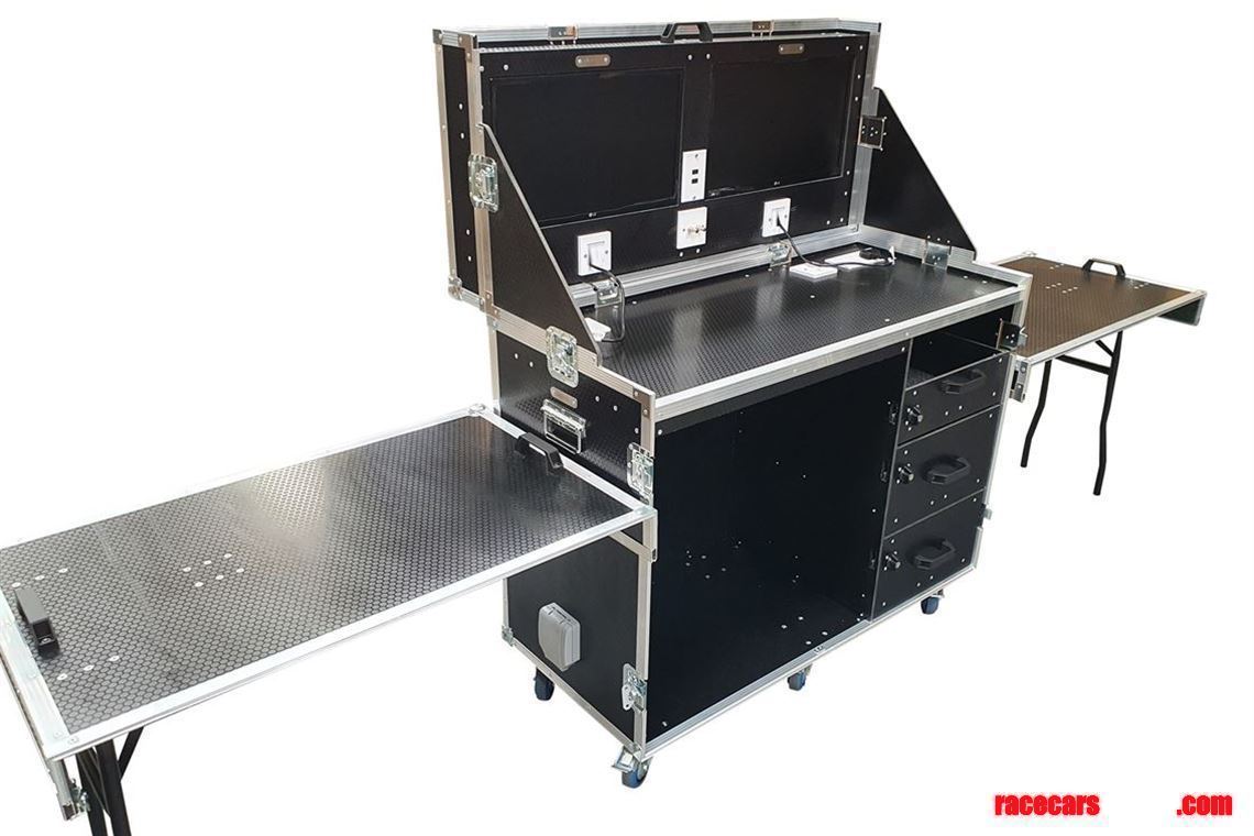 Data station flight case, with hinged fold up lid and removable front cover. Optional two piece cover that attach to the sides as tables.