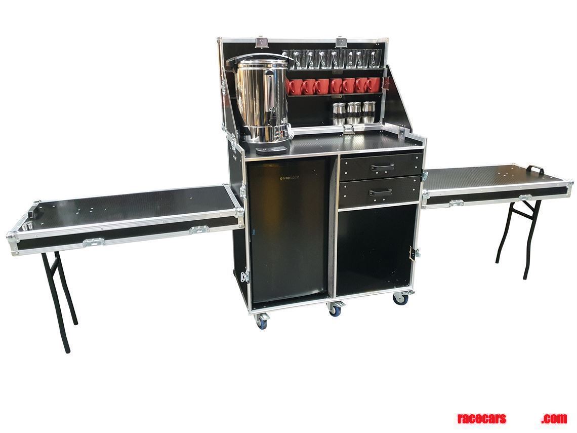 The hospitality case is supplied with a fridge (470Wx450Dx860Hmms), 22 litre water boiler, 8 x glasses, 8 x cups & tea/coffee/sugar pots.