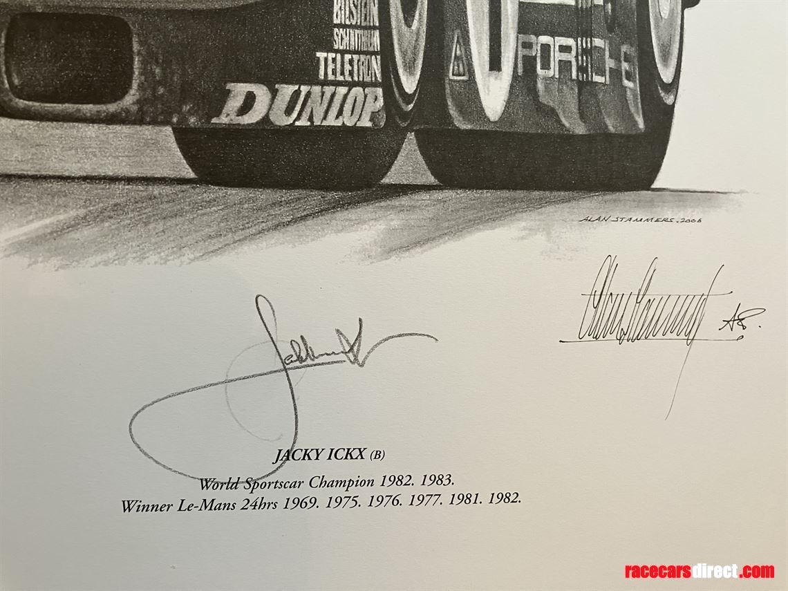 SUPERB DETAILED IMAGE BY WORLD RENOWNED ARTIST ALAN STAMMERS. FEATURING THE 24 HR LEGENDARY LEMANS WINNERS JACKIE ICKX AND DEREK BELL WINNING THE 1982 EVENT.