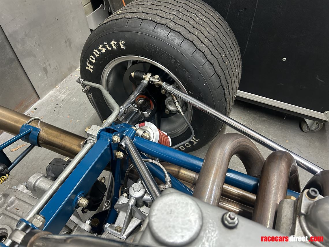 1969 Chevron B15b formula B. Complete restoration in 2020-2021: fresh honest legal 190hp Quicksilver Racengines Lotus TC, Hewland 5 speed Mk8 by Scott Young with new ratios, shift forks. Chassis taken to bare metal, crack tested and refreshed, powdercoated. Uprights magnafluxed (fronts replaced with new) and assembled with new wheel bearings. Stub axles/hubs magnafluxed. Suspension arms crack tested and assembled with new rod-ends and spherical bearings. New wiring and plumbing throughout. New brake and clutch master cylinders, clutch slave cylinder. This car is significantly faster on the straights than Brabham BT29/35 due to the narrow tub and bodywork. A brilliant and beautiful design, with a tubular and/semi-monocoque steel chassis that was ahead of its time.