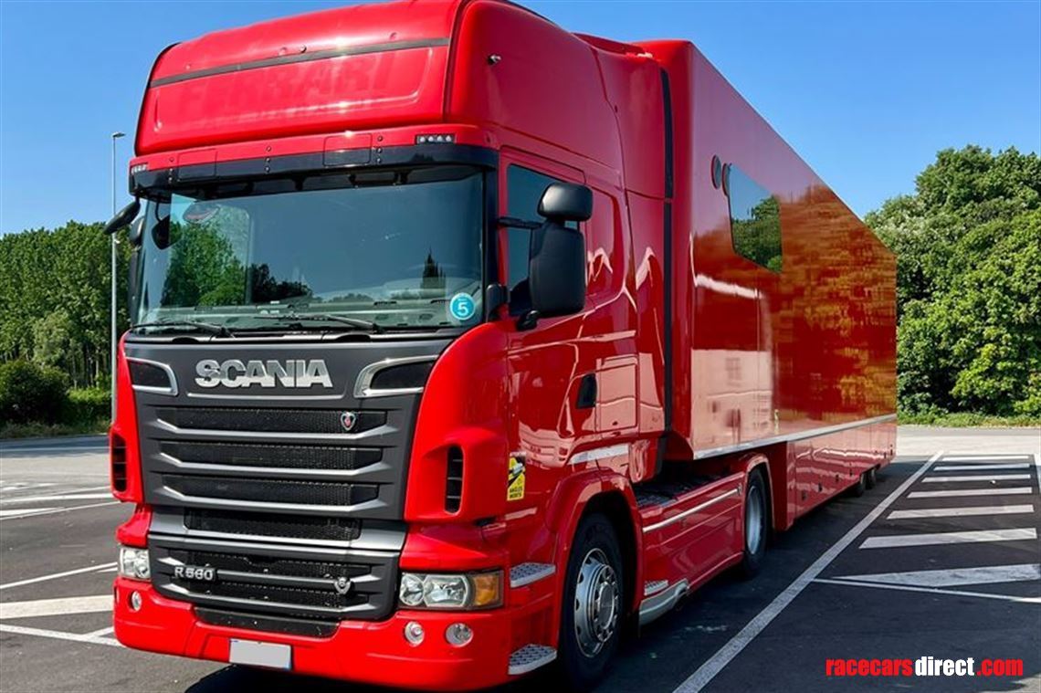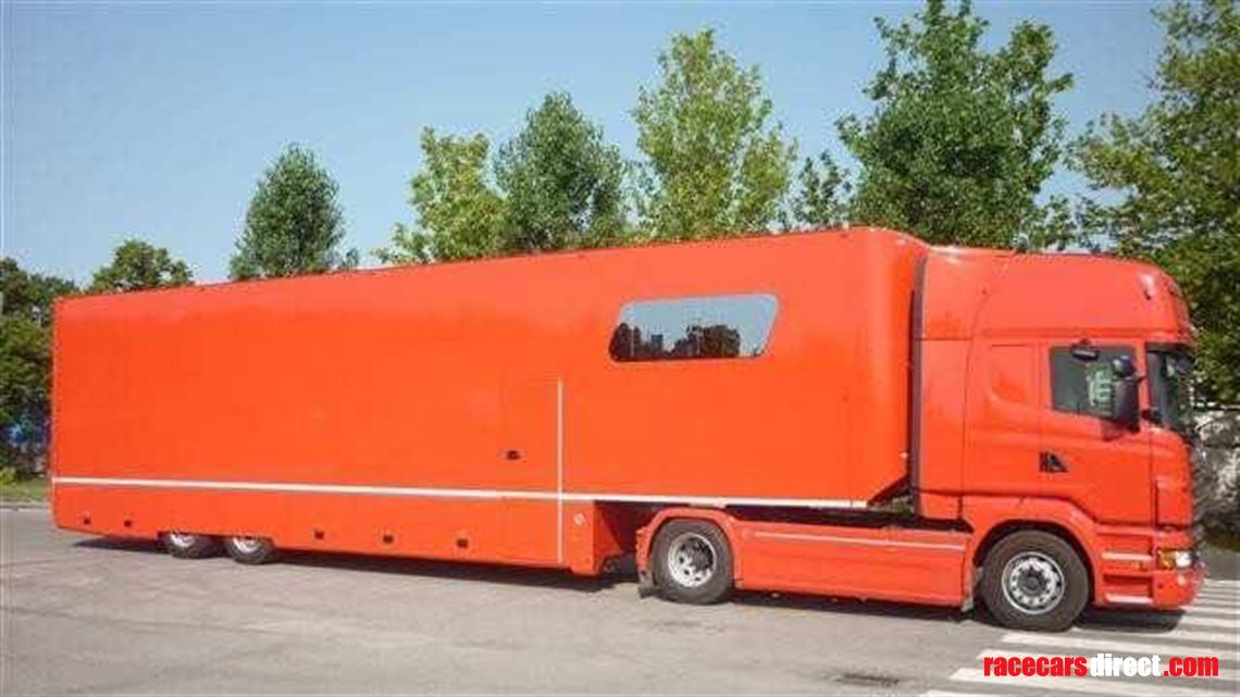 Trailer is a beautiful red ASTACAR ex Ferrari team, which transport up to 4 cars. Nice front Office with U sofa, Air-Conditioned, TV with a HDMI port, fridge.