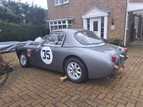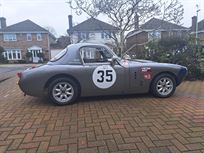 1959 Austin Healey Sprite in Jaguar Pearlescent Gunmetal with a blue nose. I bought this car in 2017 and started my hillclimb and sprint involvement in 2018. I have fully converted the car since with a Swiftune 1330 engine running on a 45 dcoe weber carb, straight-cut gearbox and lsd. The radiator and fuel tank have been replaced with alluminim items. Electric fan and electronic ignition.