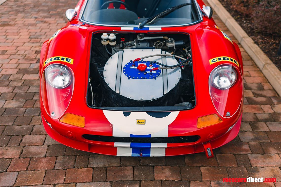 Built to emulate the factory original Le Mans racing Dino LM (chassis 02678) commissioned by Luigi Chinetti for his North American Racing Team (N.A.R.T), this one of one aluminium bodied conversion based on an original Ferrari Dino is Accompanied by an extensive race history file and Valid FIA HTP papers.