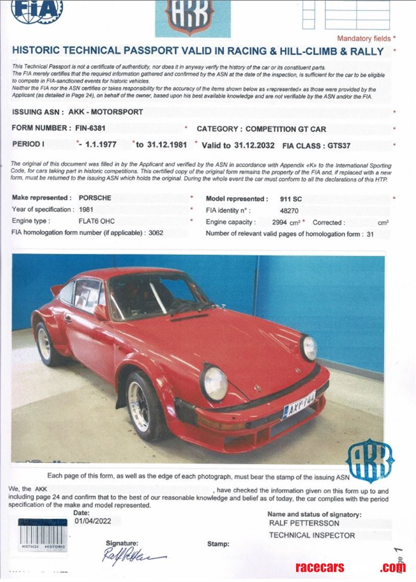 Porsche 911 SC 1981 FIA HISTORIC Rally Category 3 - SOLD