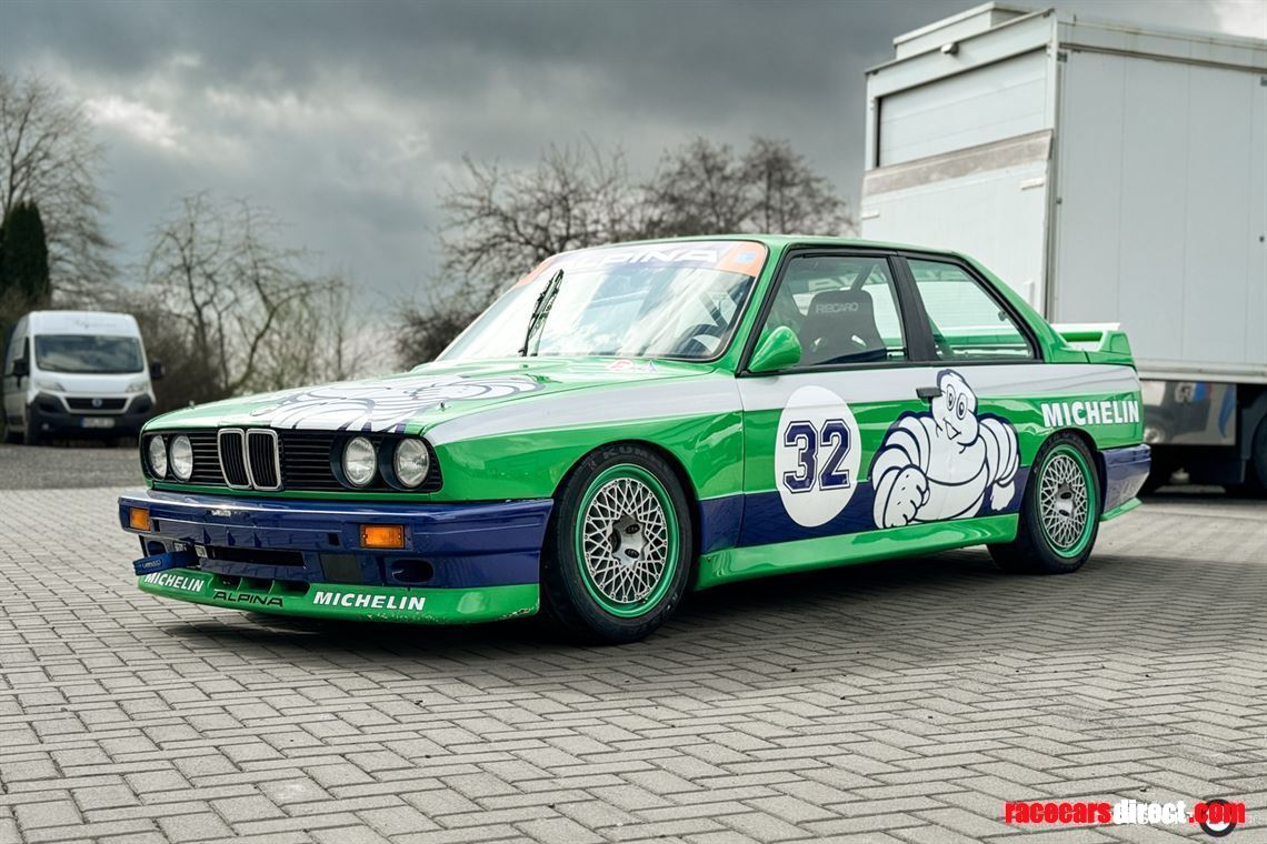 This BMW M3 E30 Group A Racing car is in good technical and visual condition. It's not just the rare Alpina stickers that make the vehicle unique, but also its base. The racing car was built on a special model of the BMW M500 Evolution (Evo II) that was built in 3 units.