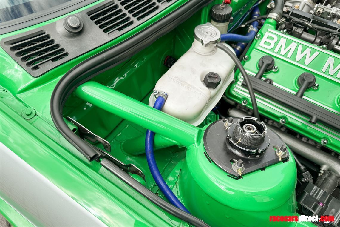 The racing car was built by Prodrive in England for circuit use, the body meets the M3 E30 Group A Prodrive Rally specifications. The chassis is fully seam welded and reinforced with welded cell and frame reinforcement.