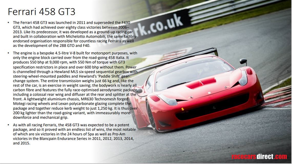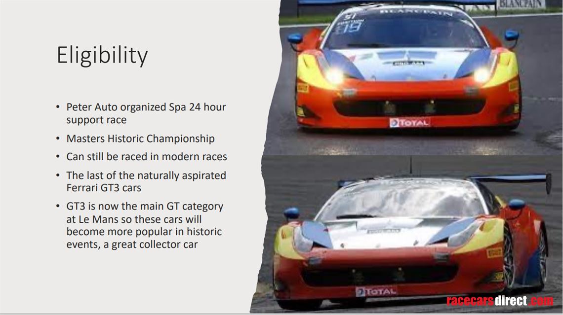 A very investable car – the last of the normally aspirated Ferrari GT3 cars.