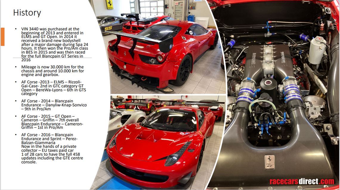 The car has been maintained by AF Corse and is an EU taxes paid car. It is currently in the UK with Scott Sport for a checkover.