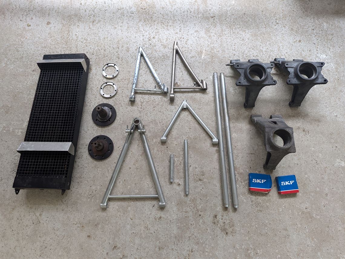 Spares: 3x cast Mag Royale uprights, Full set of wishbones and suspension linkages, 2x new wheel bearings, 2x rear hubs, and spare radiator.
