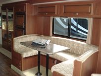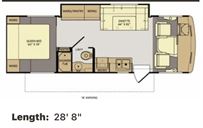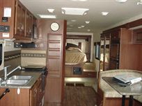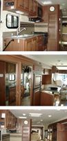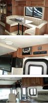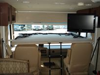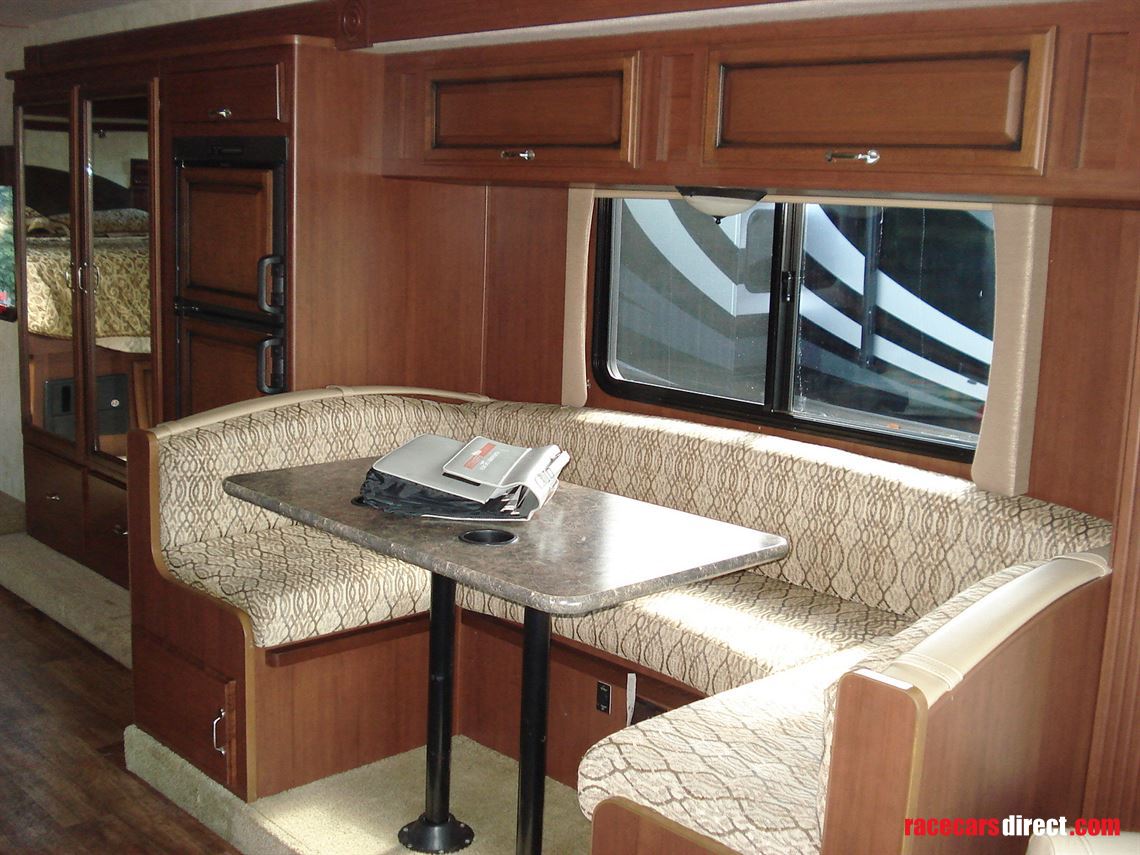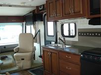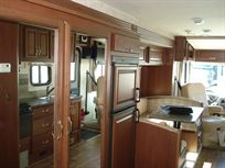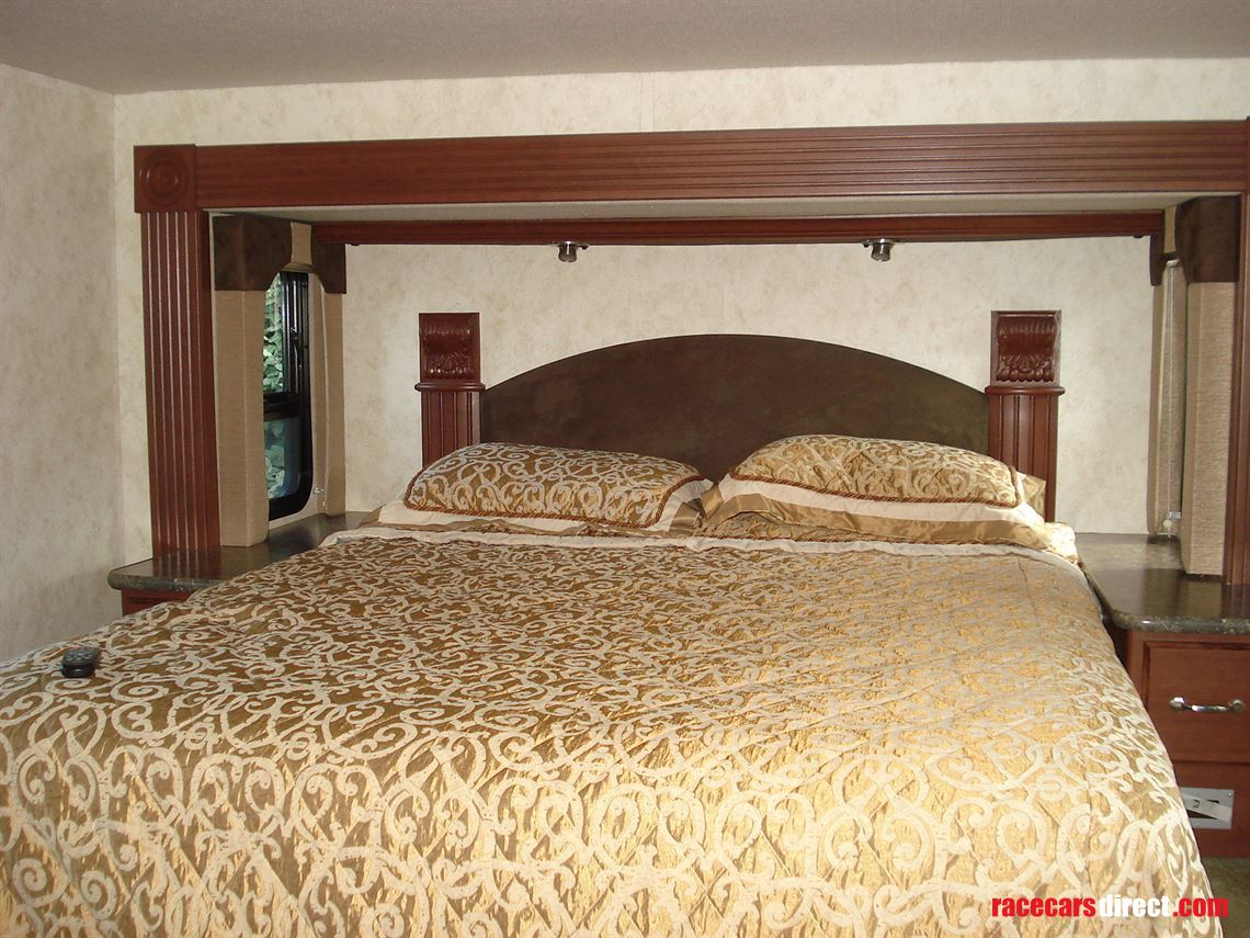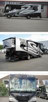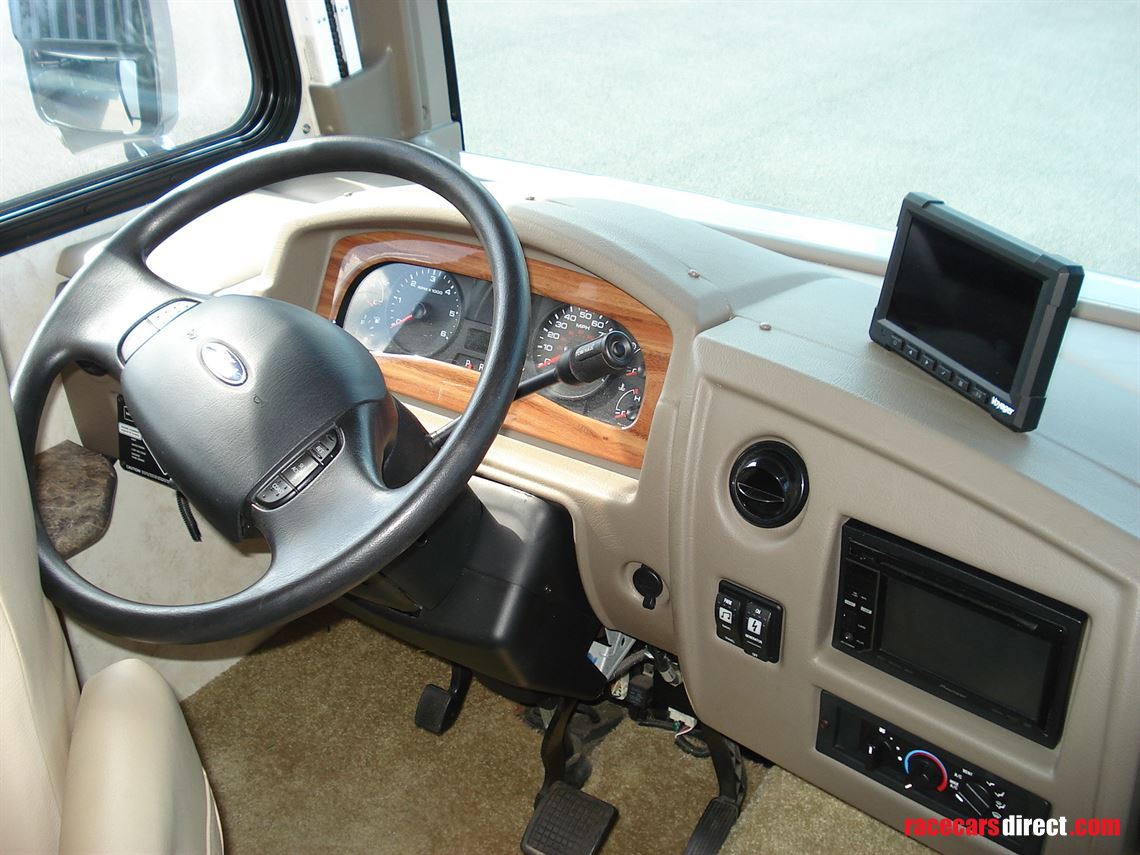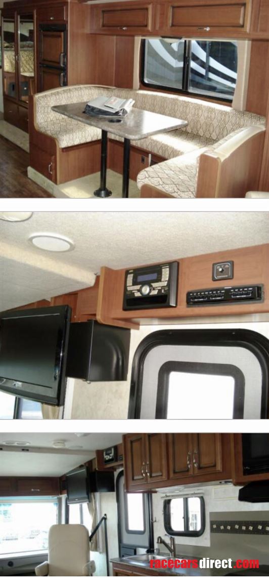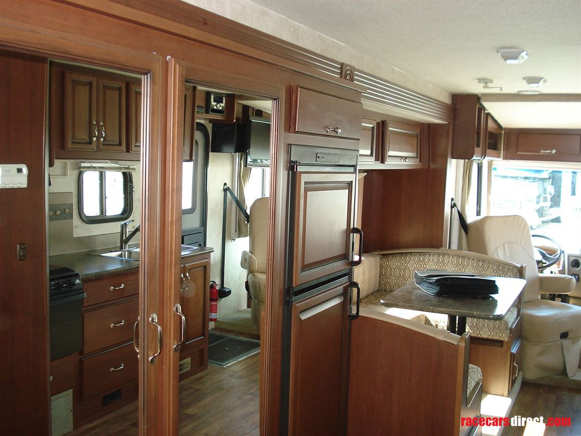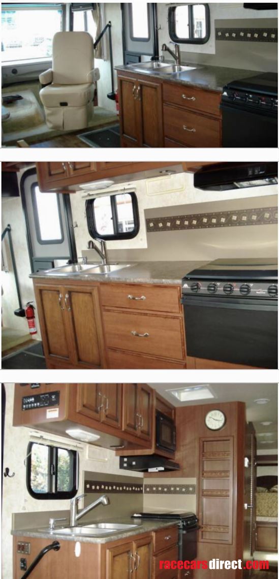 - This motorhome is clean and well taken care of. Low miles. Tires are new. 5 speed automatic transmission with overdrive. V10 motor. 80 gallon fuel tank. 5000lb towing capacity. 14 gallon propane tank. On board generator w/176.7 hours. 18' power awning. Auto power leveling jacks. Powered windshield shade. Queen Sleep Number mattress, bedroom TV, full wardrobe closet, sliding door to close off master bedroom. Powered two recliner sofa. Driver and passenger seats swivel for additional guest seating. Retractable TV in living area. 3 burner stove w/oven plus overhead microwave. Refrigerator is electric and propane. Heated hose for water hookup during cold weather travel. Extra power cord for extending shore power.