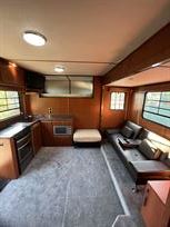 This has been an amazing truck that we have enjoyed weekends away in and can be completely off grid. With the electric side wound out the internal space is huge and allows the whole family to have space. The kitchen has a good size oven, TV, fridge plus a microwave. Queen size bed at the front, a double sofa bed in the lounge and 2 bunk beds at the rear with TV's at the end of each. Loads of storage internal and external. Toilet and power shower in a separate room with a basin and mirrored cupboard outside.