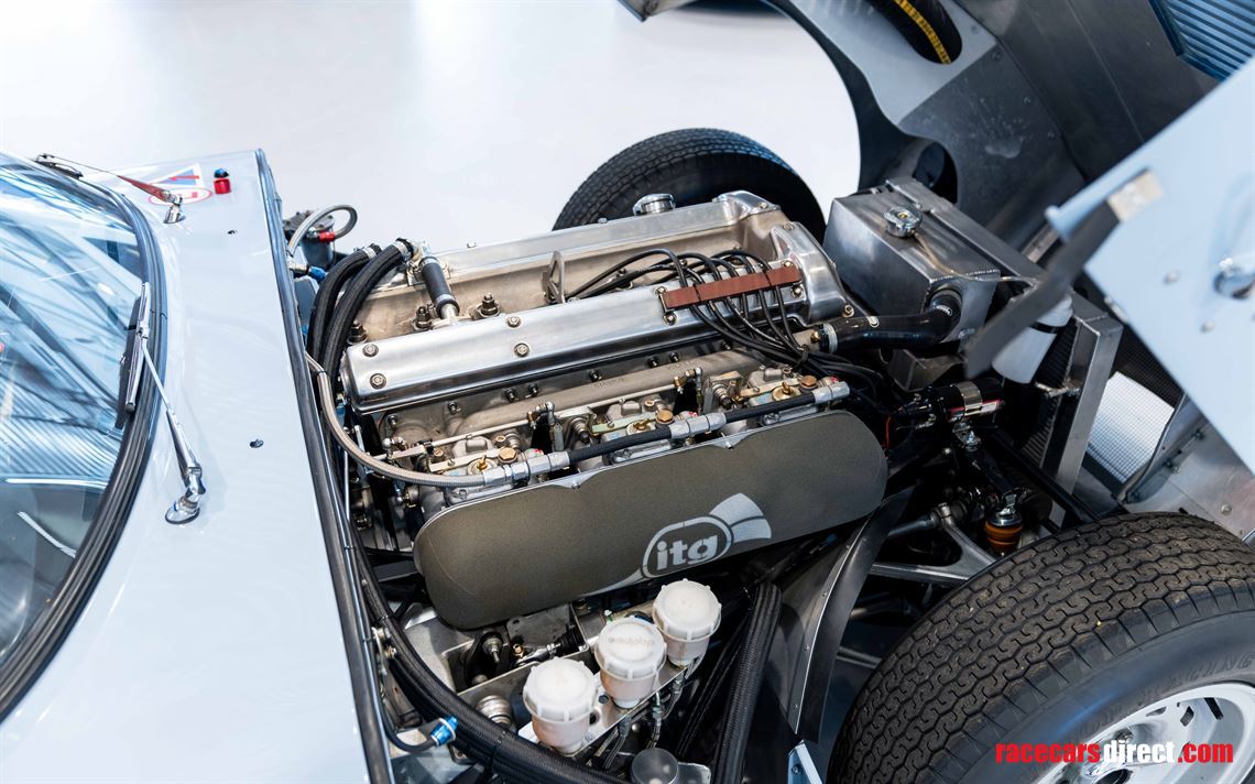 This particular Low Drag is based on a 1964 Series 1 fixed head coupe and has been built to meet the FIA Appendix K regulations with current HTP competition papers until 2032. Finished in stunning light blue paintwork this Low Drag features a full roll cage, 370bhp blue printed engine, double wishbone suspension, uprated torsion & anti-roll bars, Koni adjustable dampers, Sparco race seat with harnesses, Fire extinguisher system, 140L fuel tank, Salisbury limited slip differential and a four-speed straight cut gearbox.