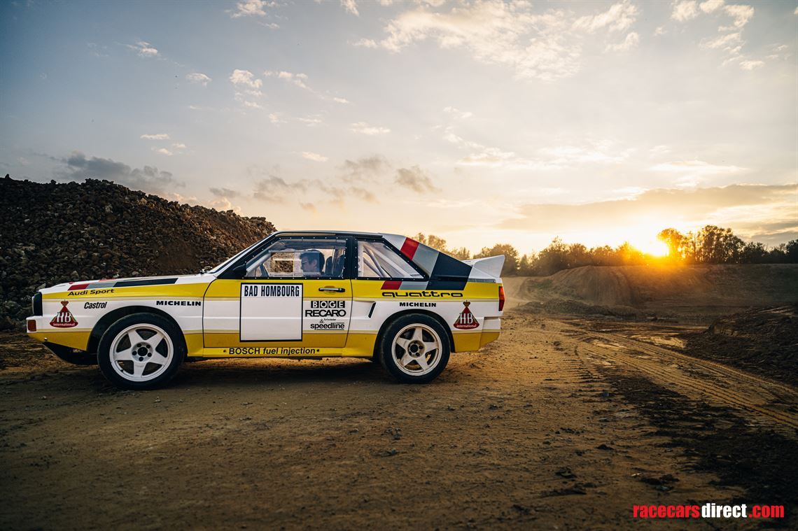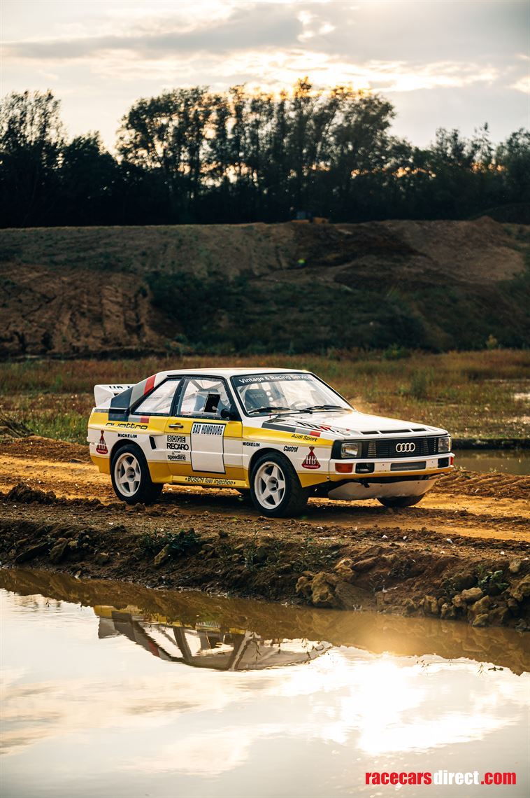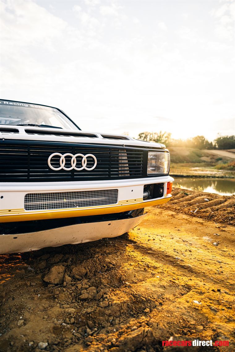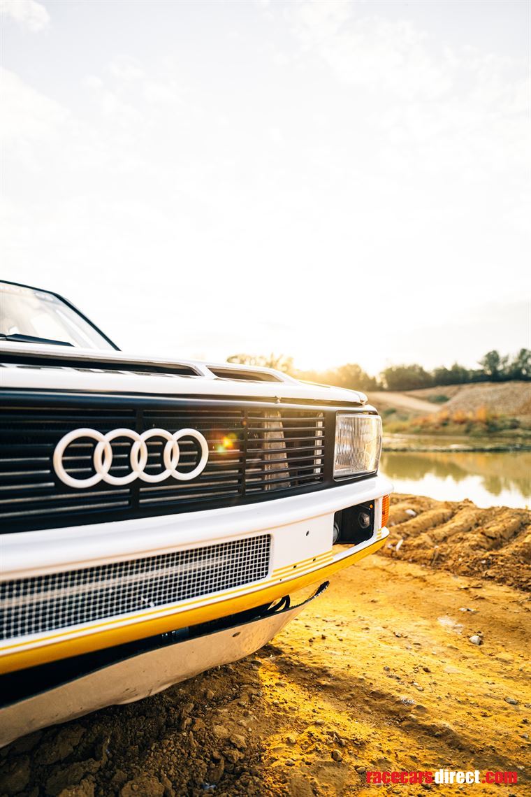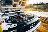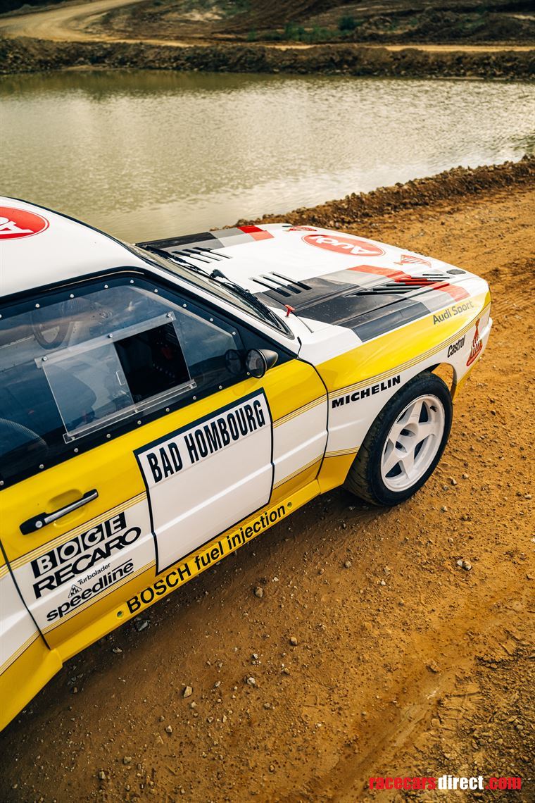 - This 1984 Audi is a bespoke Sport Quattro rally car evocation, inspired by the icons of Group B, custom-built with a shortened wheelbase (32cm) and a modified windscreen angle. The car has covered just 500 km since its build.