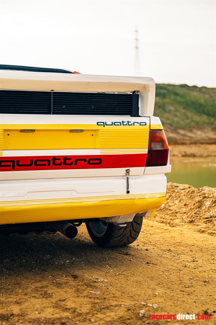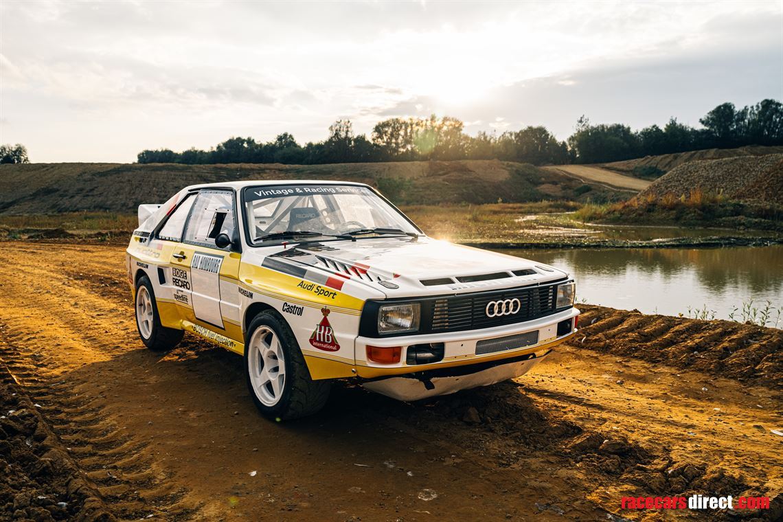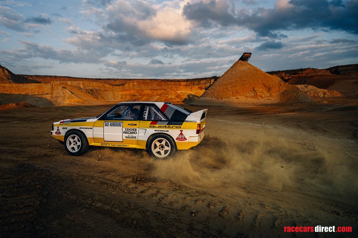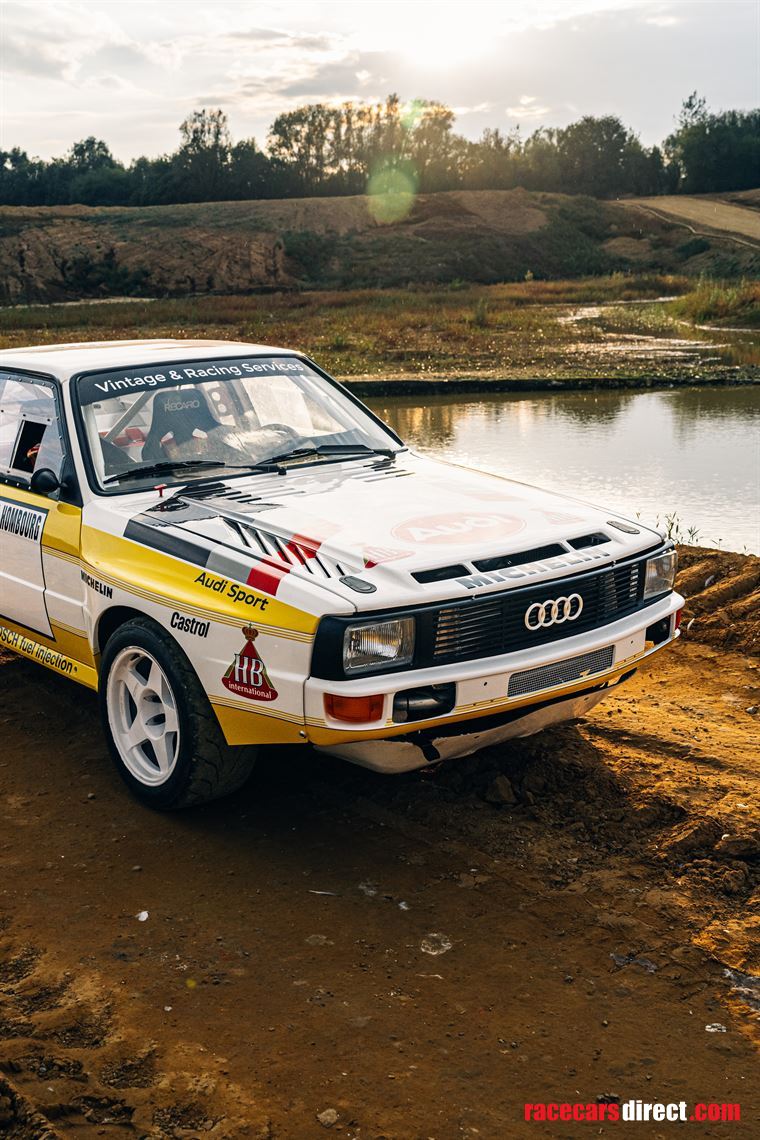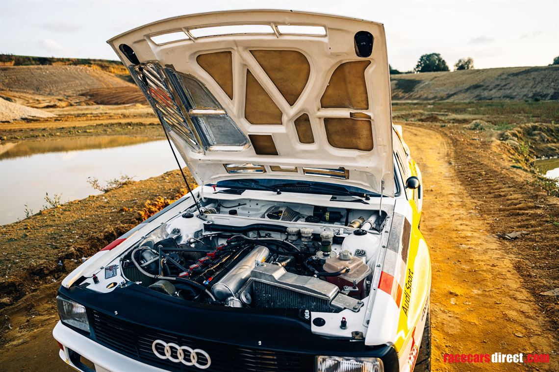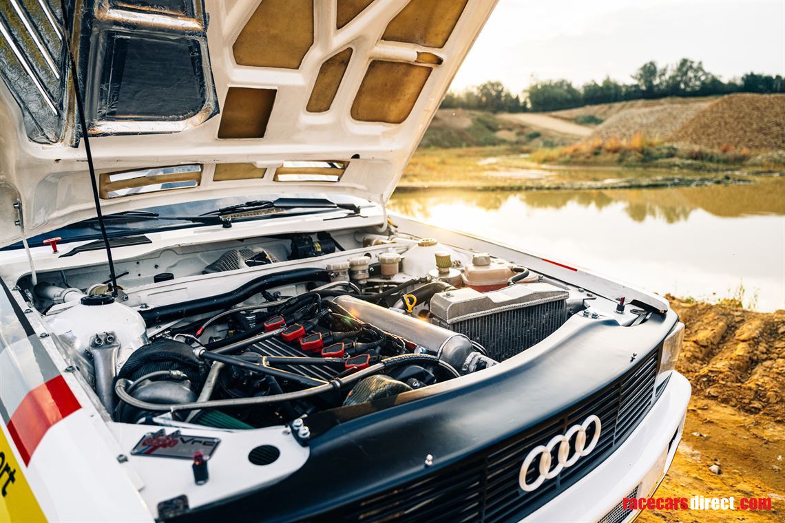 - This 1984 Audi is a bespoke Sport Quattro rally car evocation, inspired by the icons of Group B, custom-built with a shortened wheelbase (32cm) and a modified windscreen angle. The car has covered just 500 km since its build.