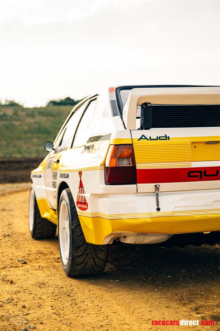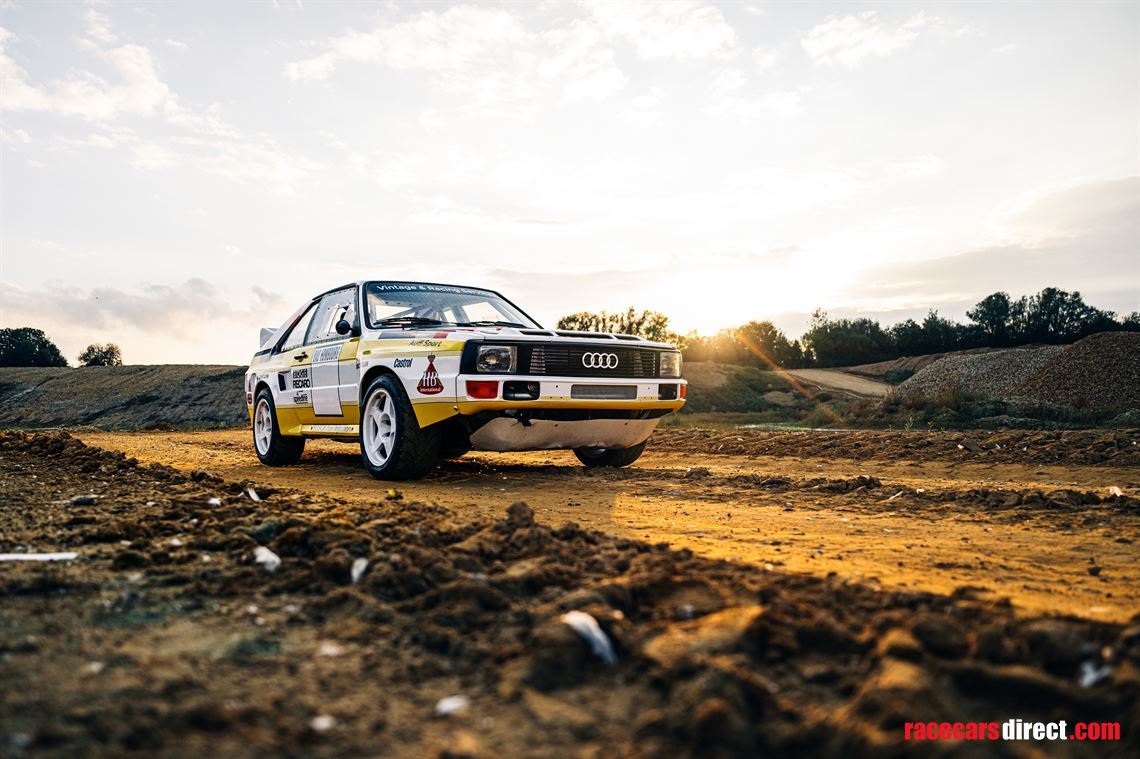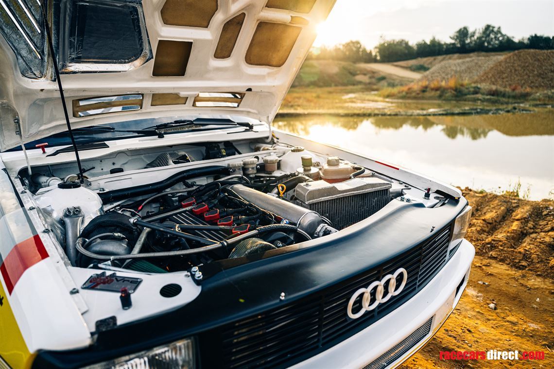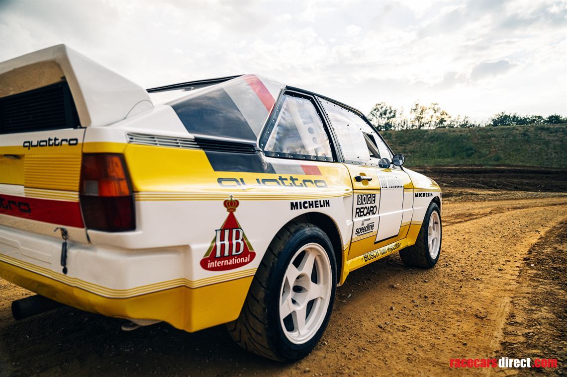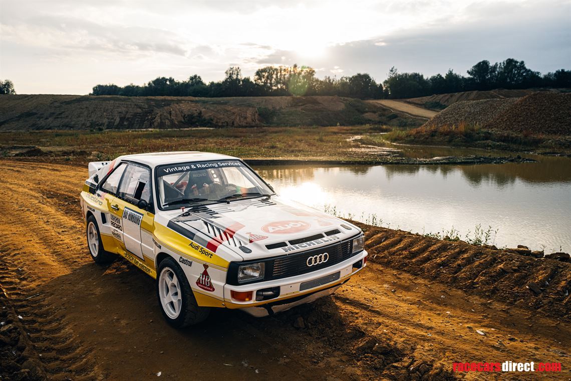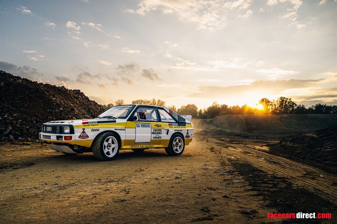 - This 1984 Audi is a bespoke Sport Quattro rally car evocation, inspired by the icons of Group B, custom-built with a shortened wheelbase (32cm) and a modified windscreen angle. The car has covered just 500 km since its build.