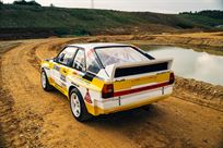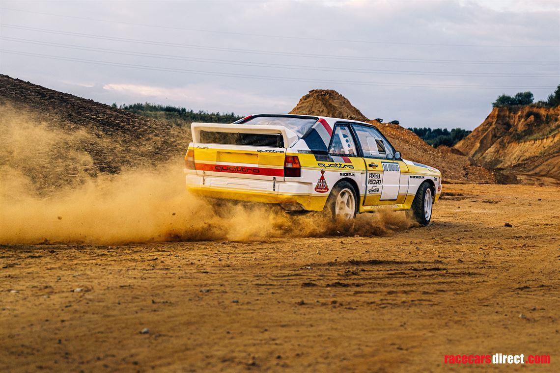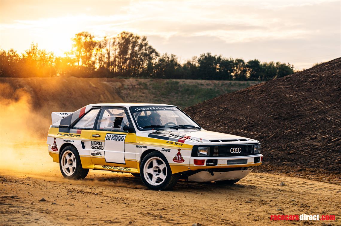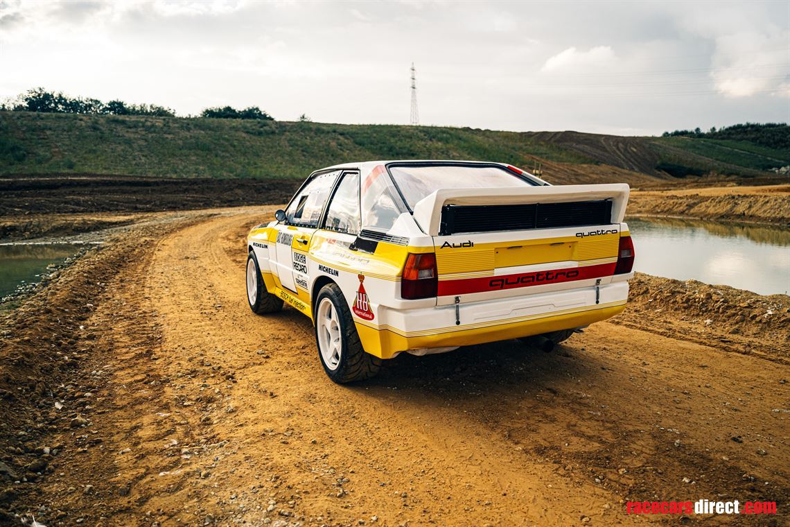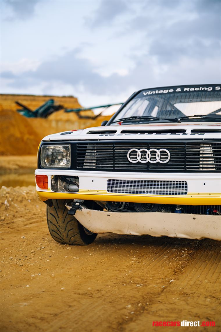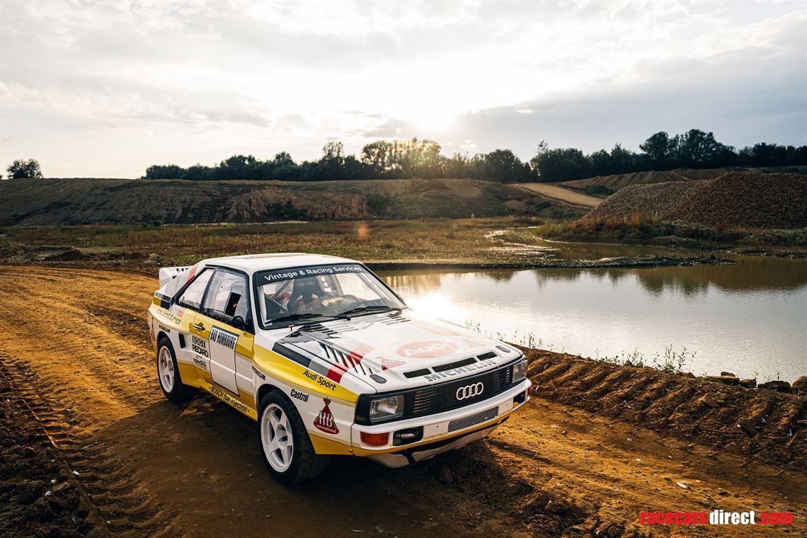 - This 1984 Audi is a bespoke Sport Quattro rally car evocation, inspired by the icons of Group B, custom-built with a shortened wheelbase (32cm) and a modified windscreen angle. The car has covered just 500 km since its build.