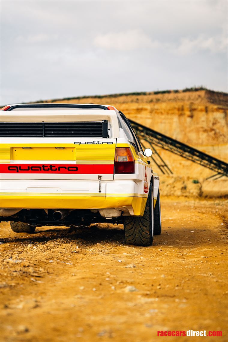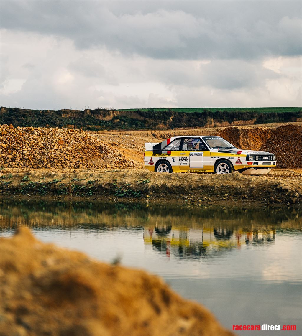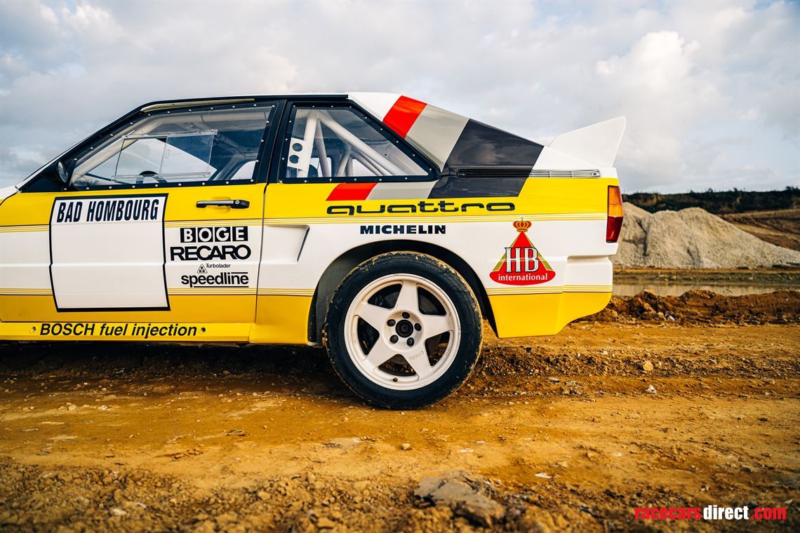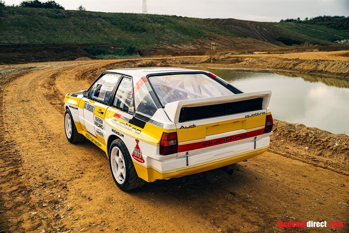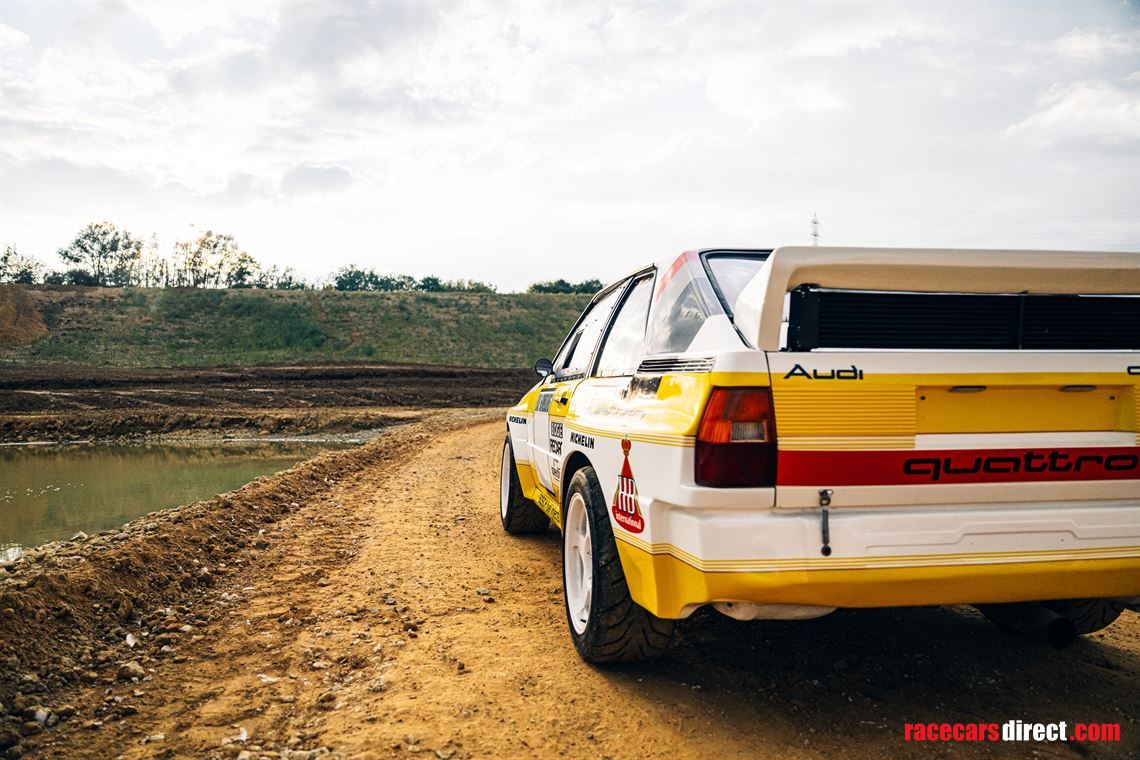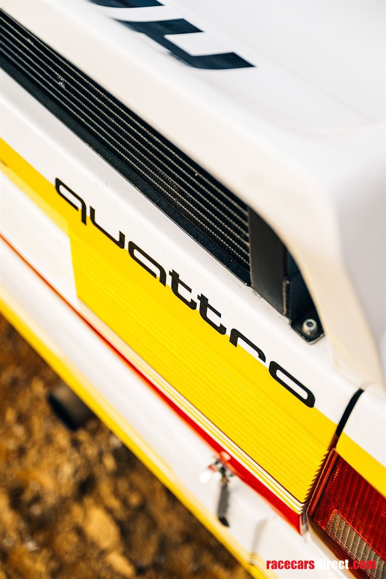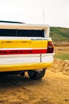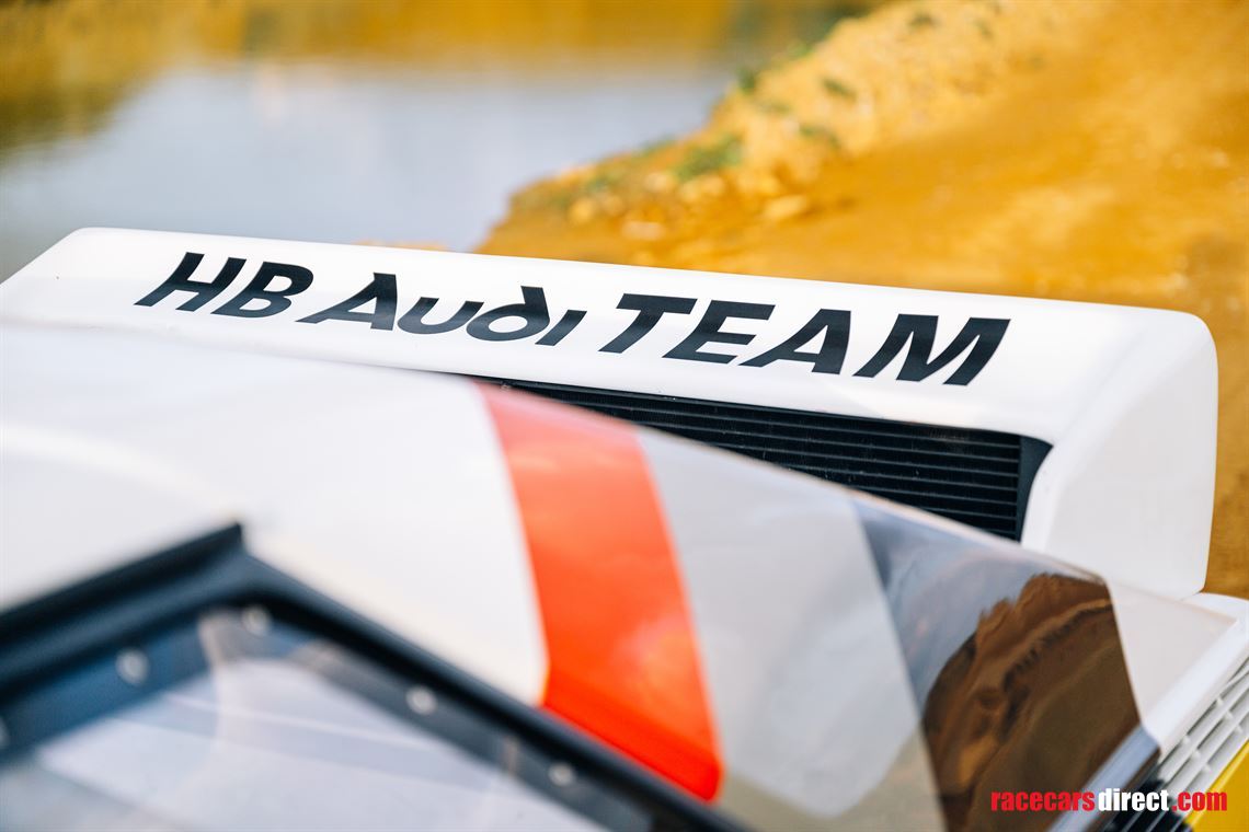- This Quattro is finished in white with a yellow lower section and central stripe, as well as various sponsor decals, creating an impressive homage to the Group B period Audi HB liveries.