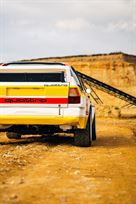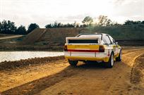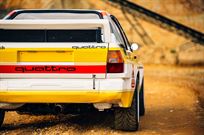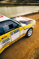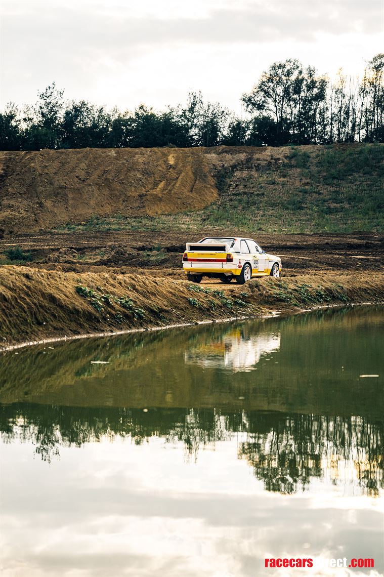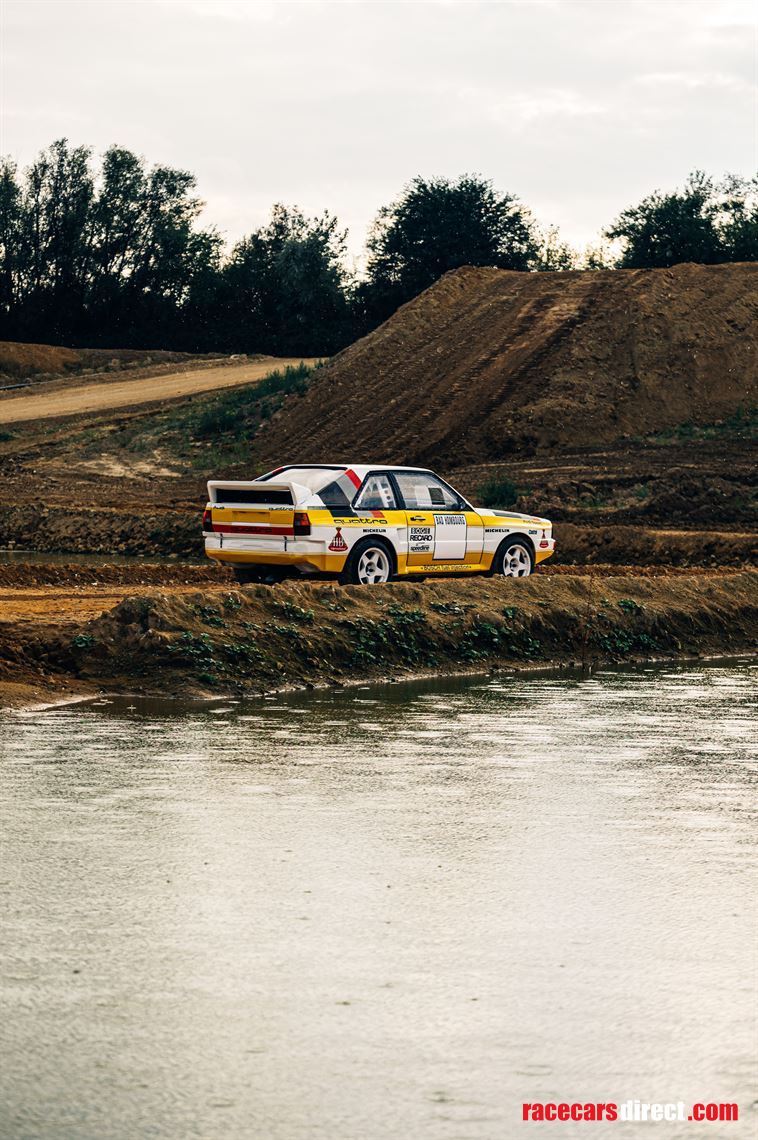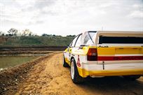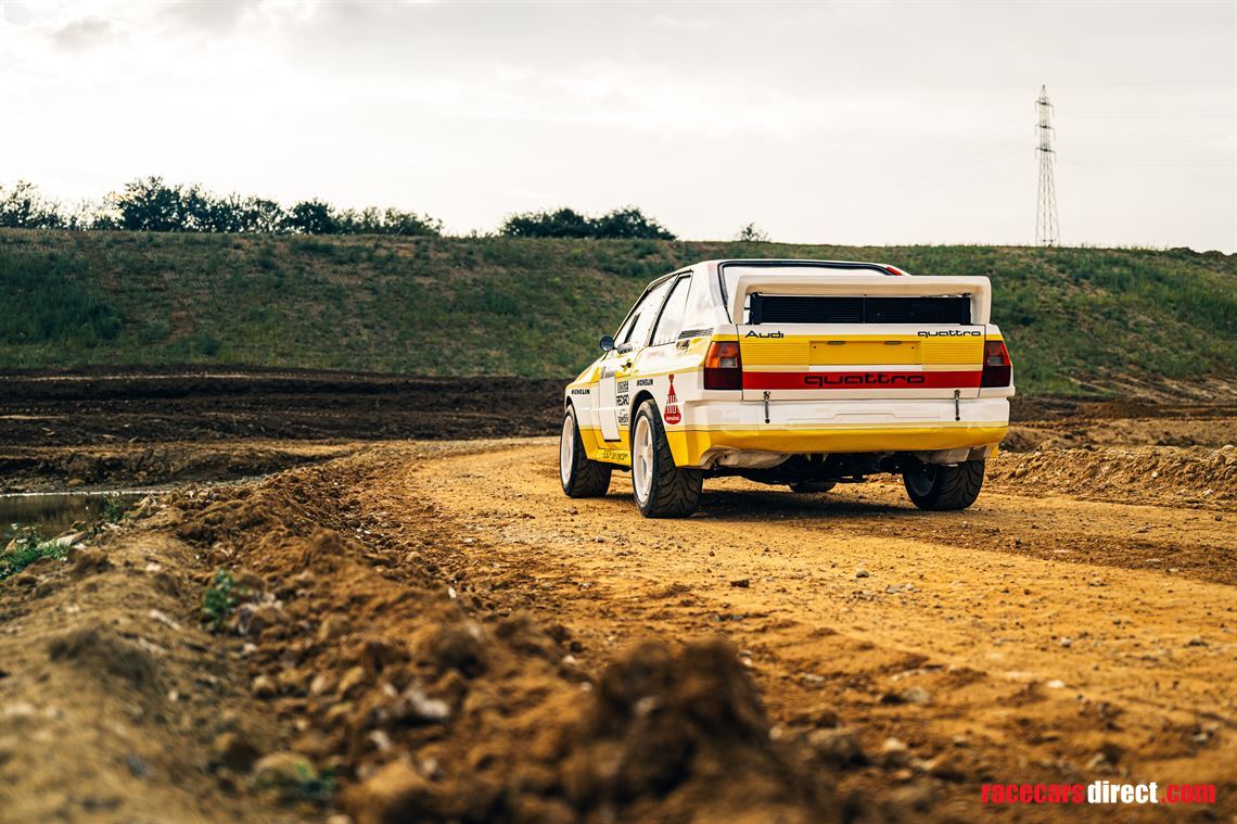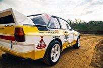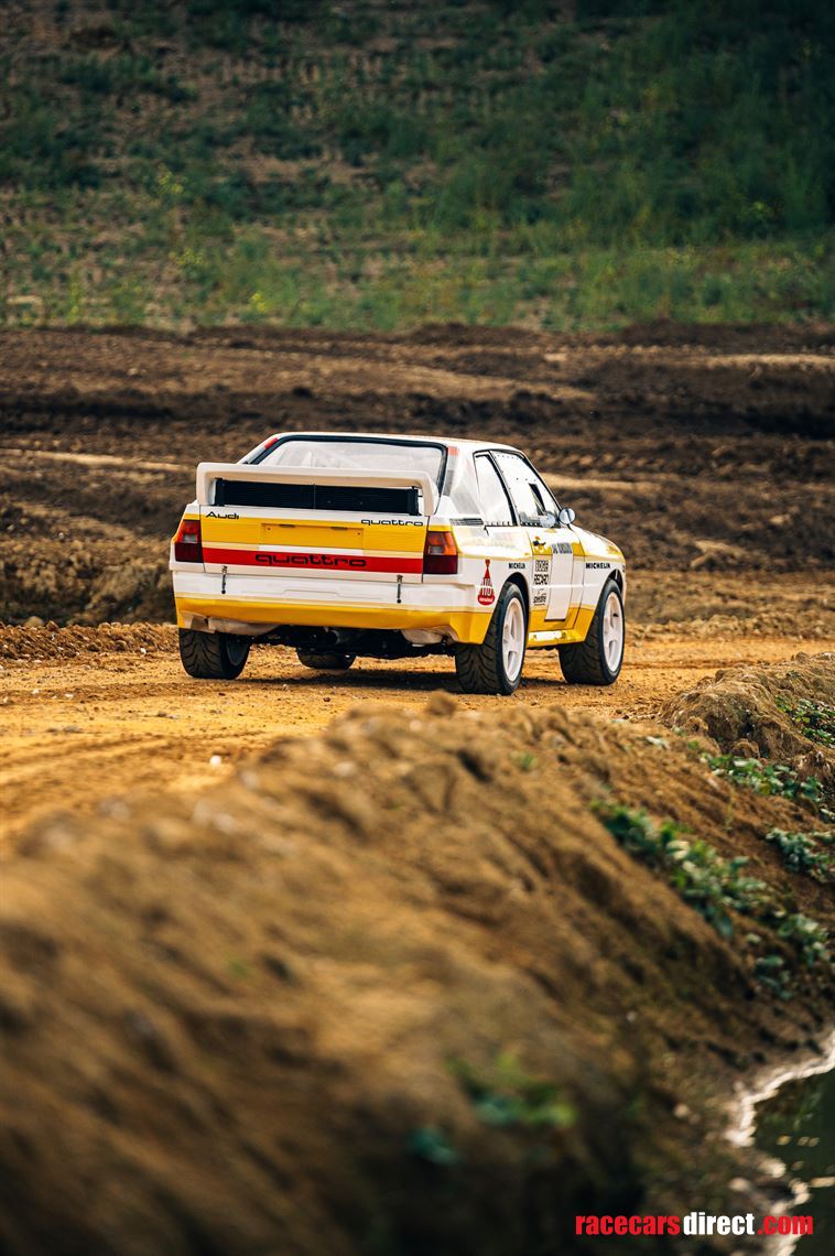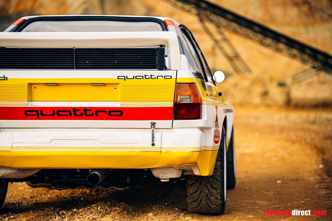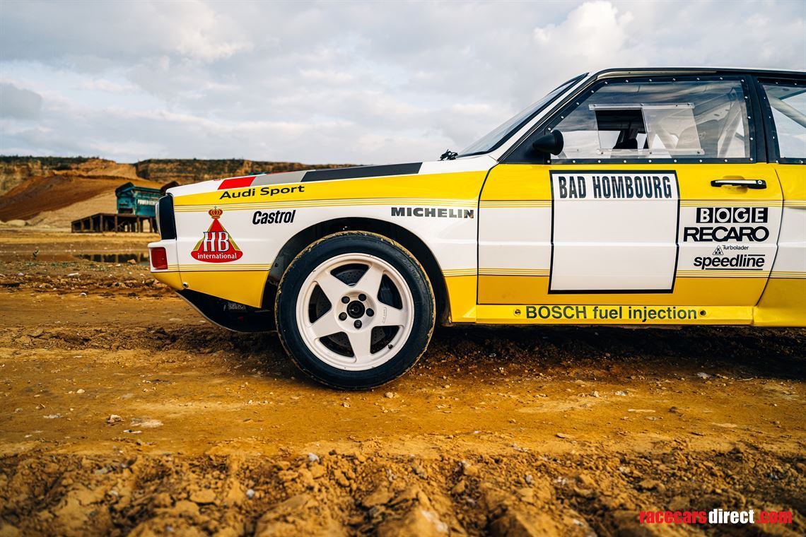 - This Quattro is finished in white with a yellow lower section and central stripe, as well as various sponsor decals, creating an impressive homage to the Group B period Audi HB liveries.