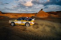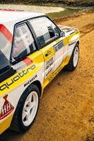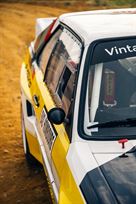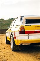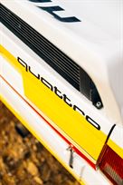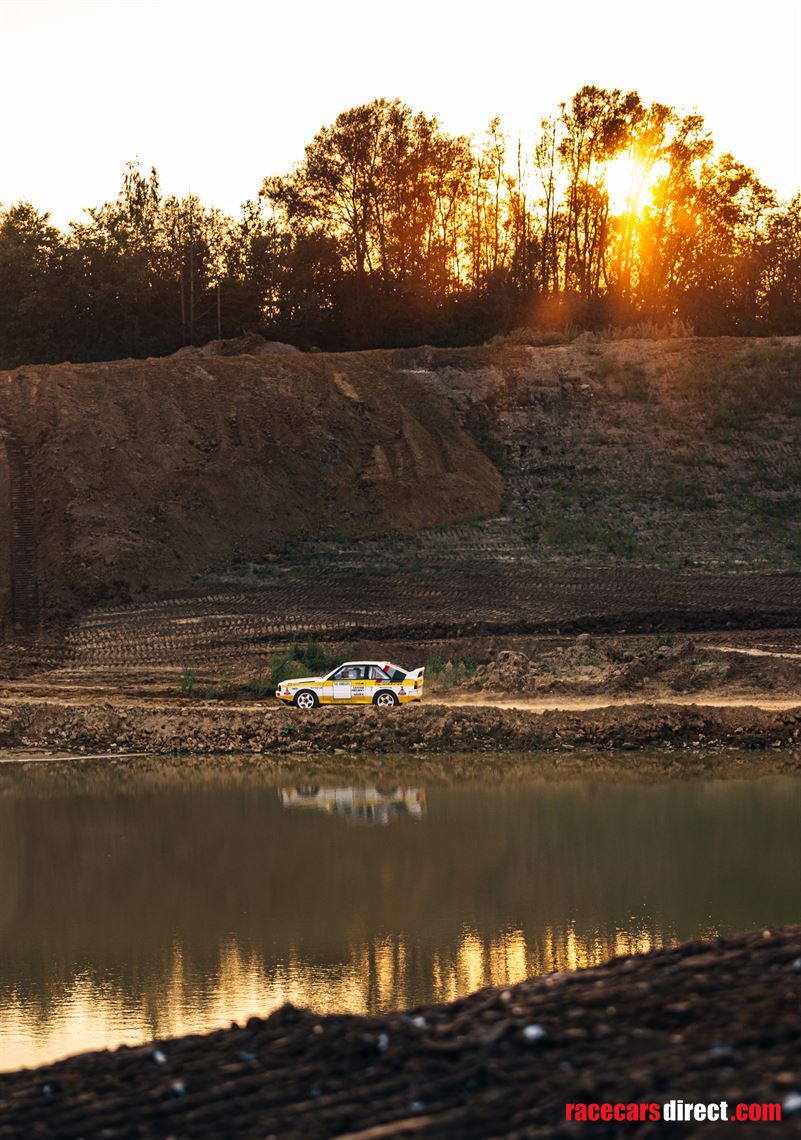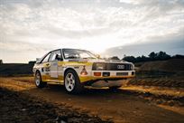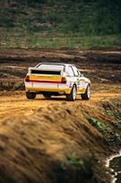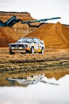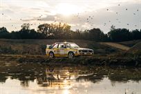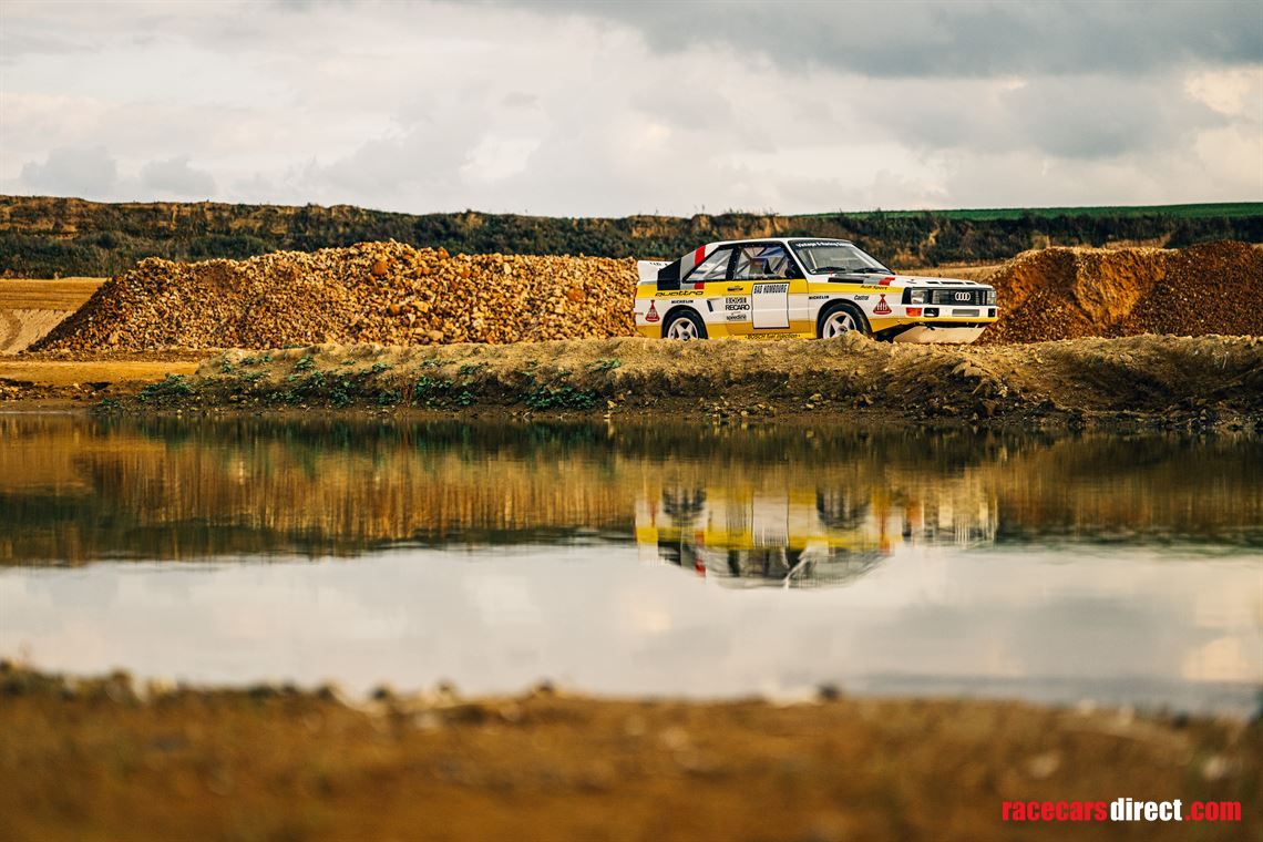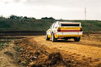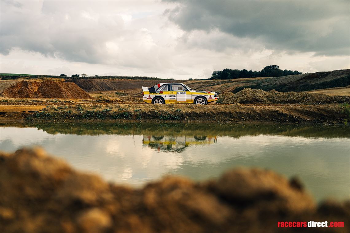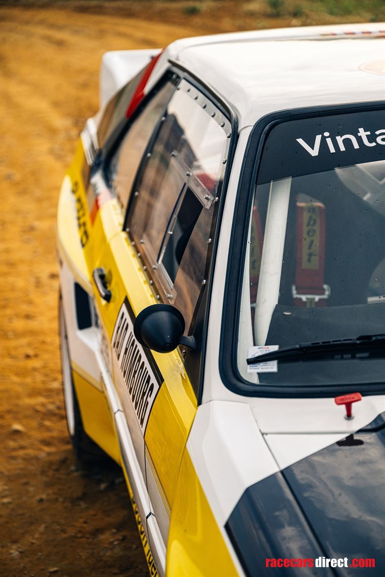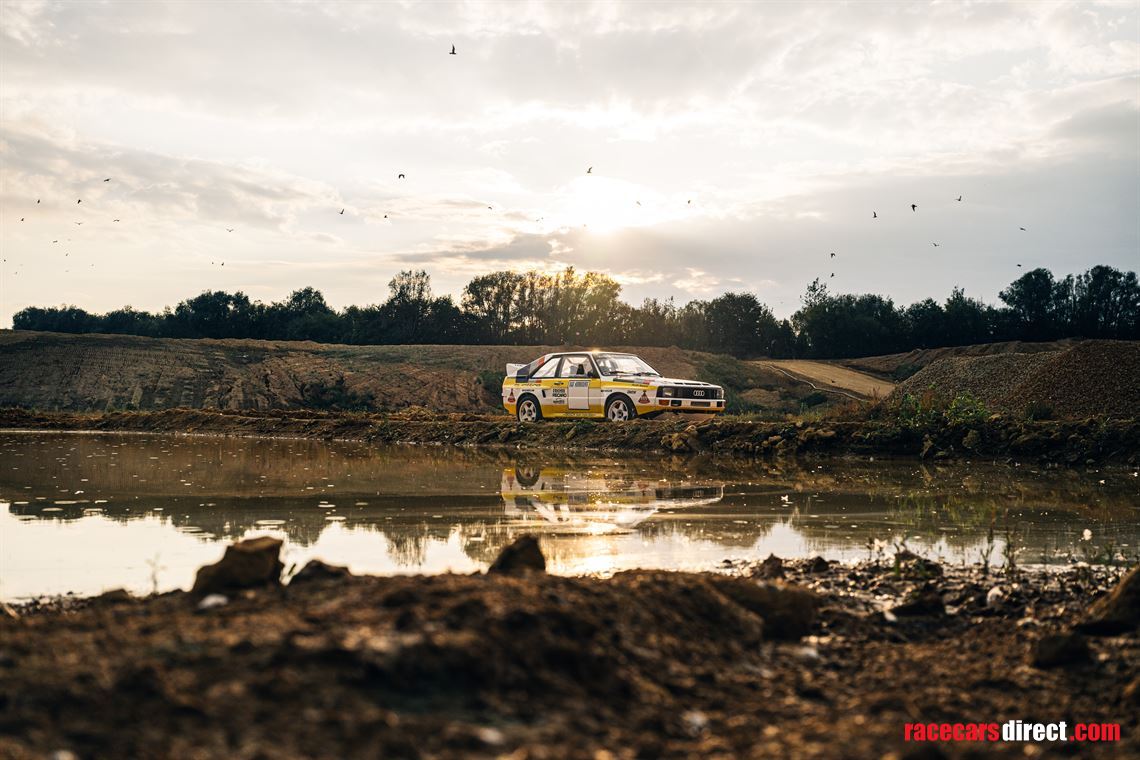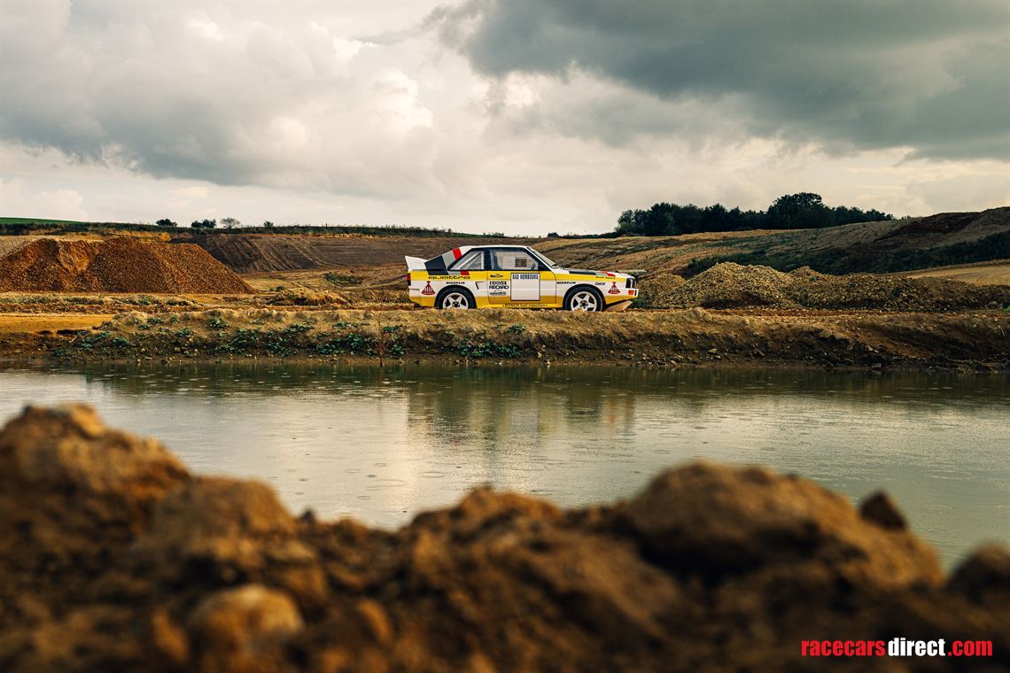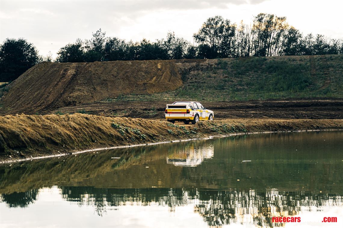 - This Quattro is finished in white with a yellow lower section and central stripe, as well as various sponsor decals, creating an impressive homage to the Group B period Audi HB liveries.