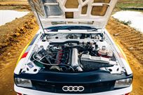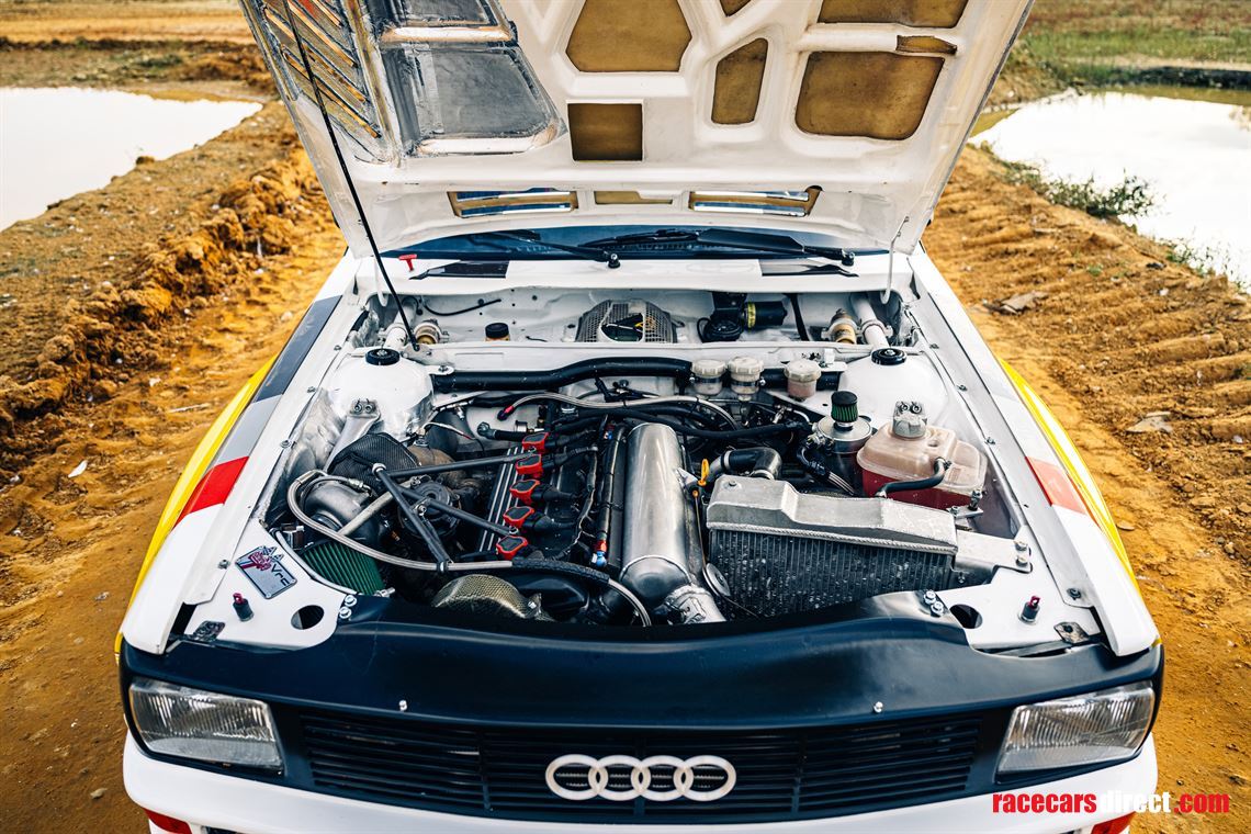 - The car now features a ‘01E’ six-speed short-ratio ‘dog-box’ manual transmission, front, central and rear self-locking differentials, three-way adjustable Proflex suspension, an ATL FIA-approved flexible fuel tank with surge tank and integrated dual 044 fuel pumps, MaxxEcu Race engine management, a Garrett G25-550 turbocharger with ceramic bearings, a forged engine block, reinforced cylinder head valves and springs, Porsche brakes, a Wildwood pedal box, AP Racing brake master cylinders, custom Sport Quattro running gear, and Uniball ball joints.