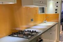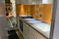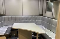 Rear race deck Upper lockers on N/S side and listers on O/S with stainless work bench above , sleeping benches for two single beds,