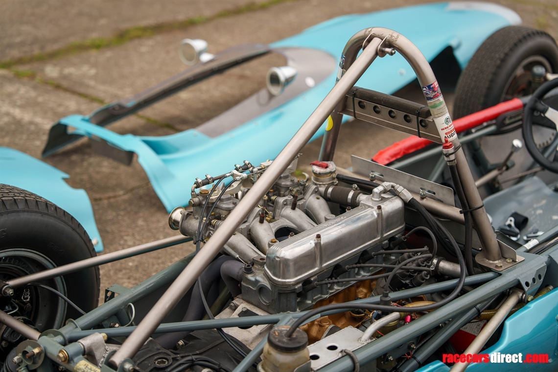This immaculate example has a unique specification. It is fitted with a Ford engine and four speed Hewland gearbox, disc brakes front and drums rear. The specification enables it to run in the E2 Class. Given it is a very competitive car (for example a class winner and class lap record holder at Oulton Park) it has the potential to win the Lurani and Silverline Championships outright, as well as being a very strong contender for class honours.