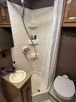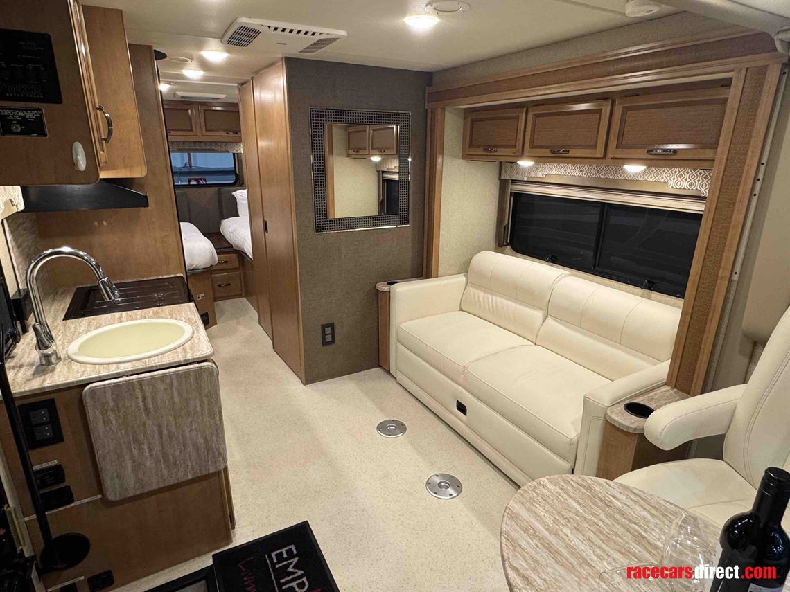 2016 Thor Vegas 24.1. At only 24ft long, this usable American RV has all the benefits of a luxury motorhome without the drawbacks of size. With a single slideout in the living area, this 5 berth van has 2 singles to the rear that can make into a double, pullout sofabed and an electrically operated single above the cab. With a fantastic bathroom and the luxurious kitchen you would expect of an RV, This one includes cab and habitation aircon, reverse camera, alarm, 2x tvs, petrol generator, gas tank and a towbar.