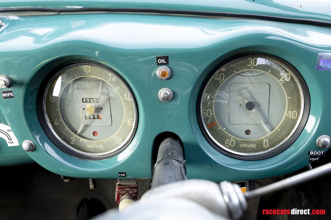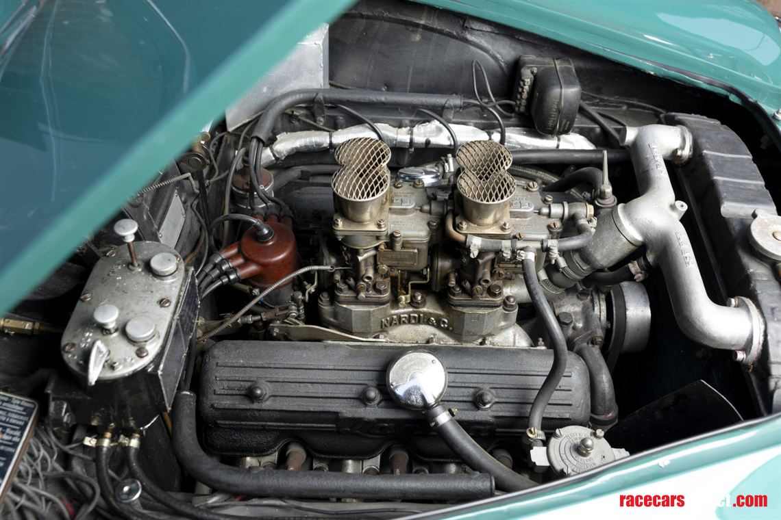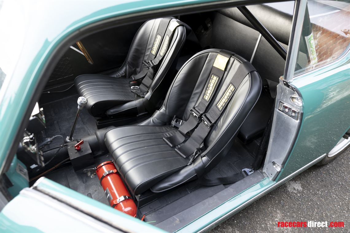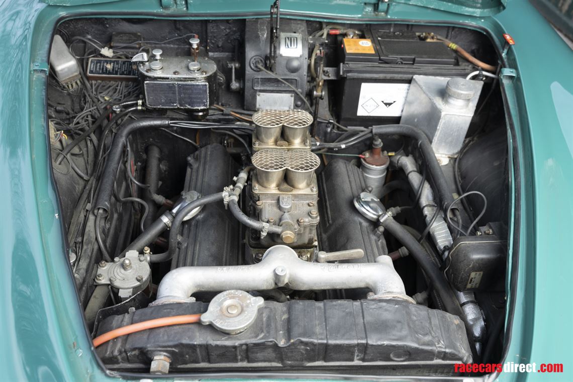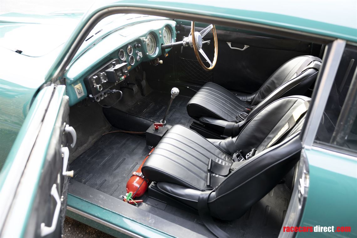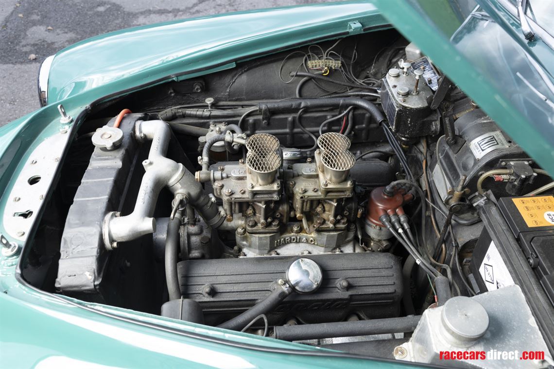 The engine is a stronger 5th series unit with a Nardi inlet manifold and two twin-choke Weber 40 DCL carburettors. Other competition features include 79mm pistons, a Tim Burrett race camshaft and timing chain tensioner.