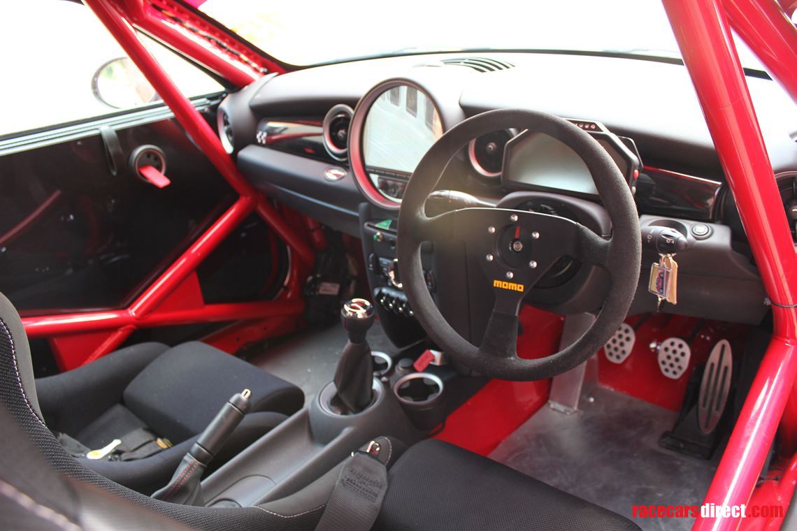 The Car was originally built to "Mini Challenge" race specifications and included a full strip down to the shell. The shell was fitted with a newly developed steel roll cage fully welded into the shell, the roll cage was designed alongside BMW Motorsports German Coupe roll cadge to ensure a neat installation with safety paramount.