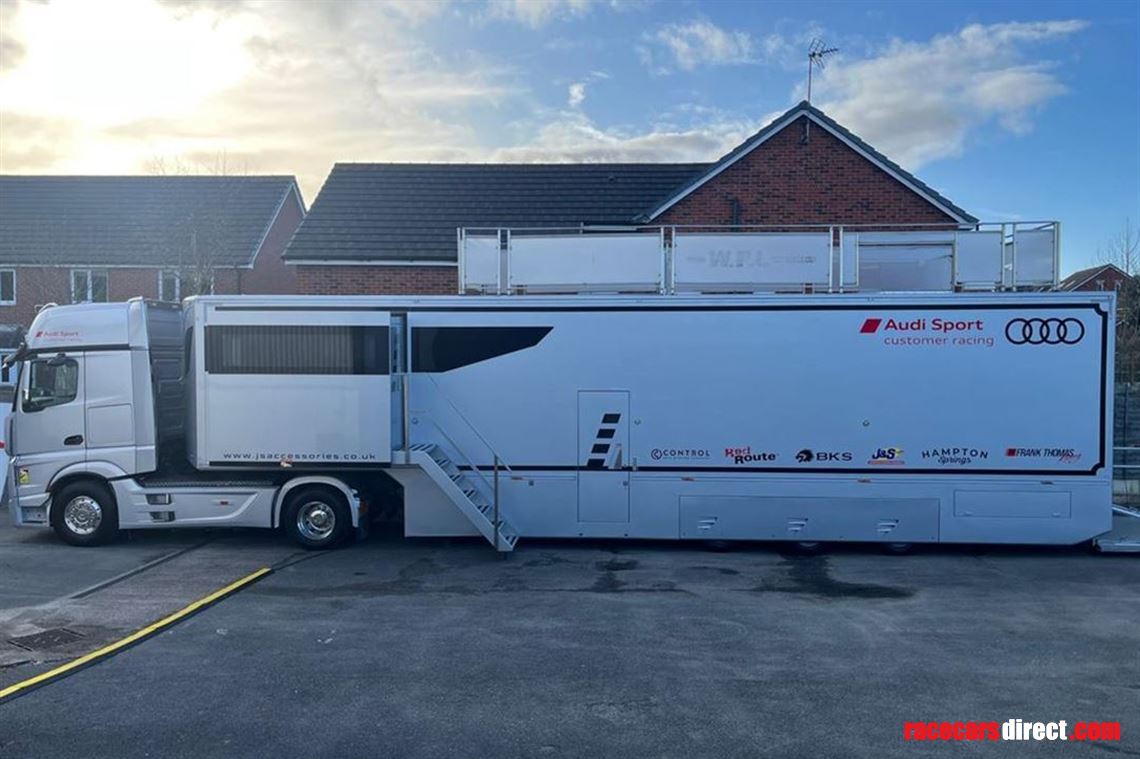We are selling our Mercedes Actros 1851 4x2 tractor unit (2013) paired with a Renegade race trailer, originally built for WPI Motorsport to an exceptional standard.