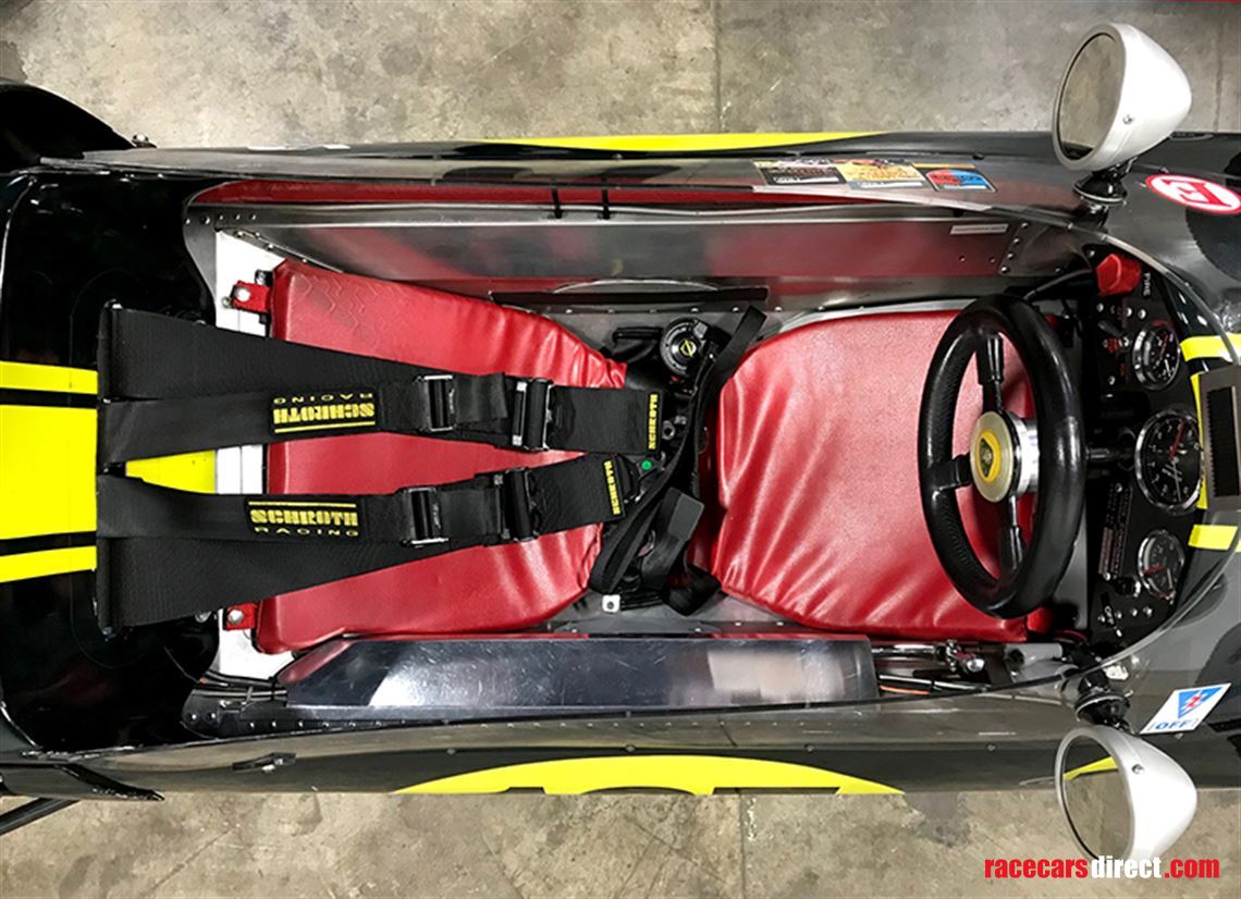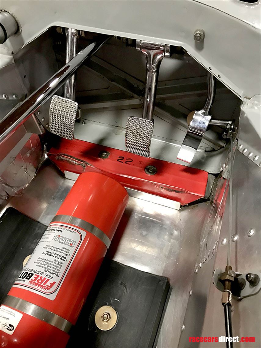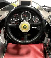 This is a competitive lightweight car; it has to be ballasted by nearly 40 pounds to bring it UP to minimum weight! It has adjustable shocks, pop off steering wheel, adjustable steering column, adjustable pedals, a Stack electronic tachometer with chronometric movement, proper Smiths gauges, a booster plug for starting and an LED rain light. The gearbox was recently inspected and the shift forks adjusted in our Hewland jig. The Lotus was also recently aligned and corner weighted. It truly is in race ready condition.