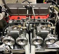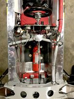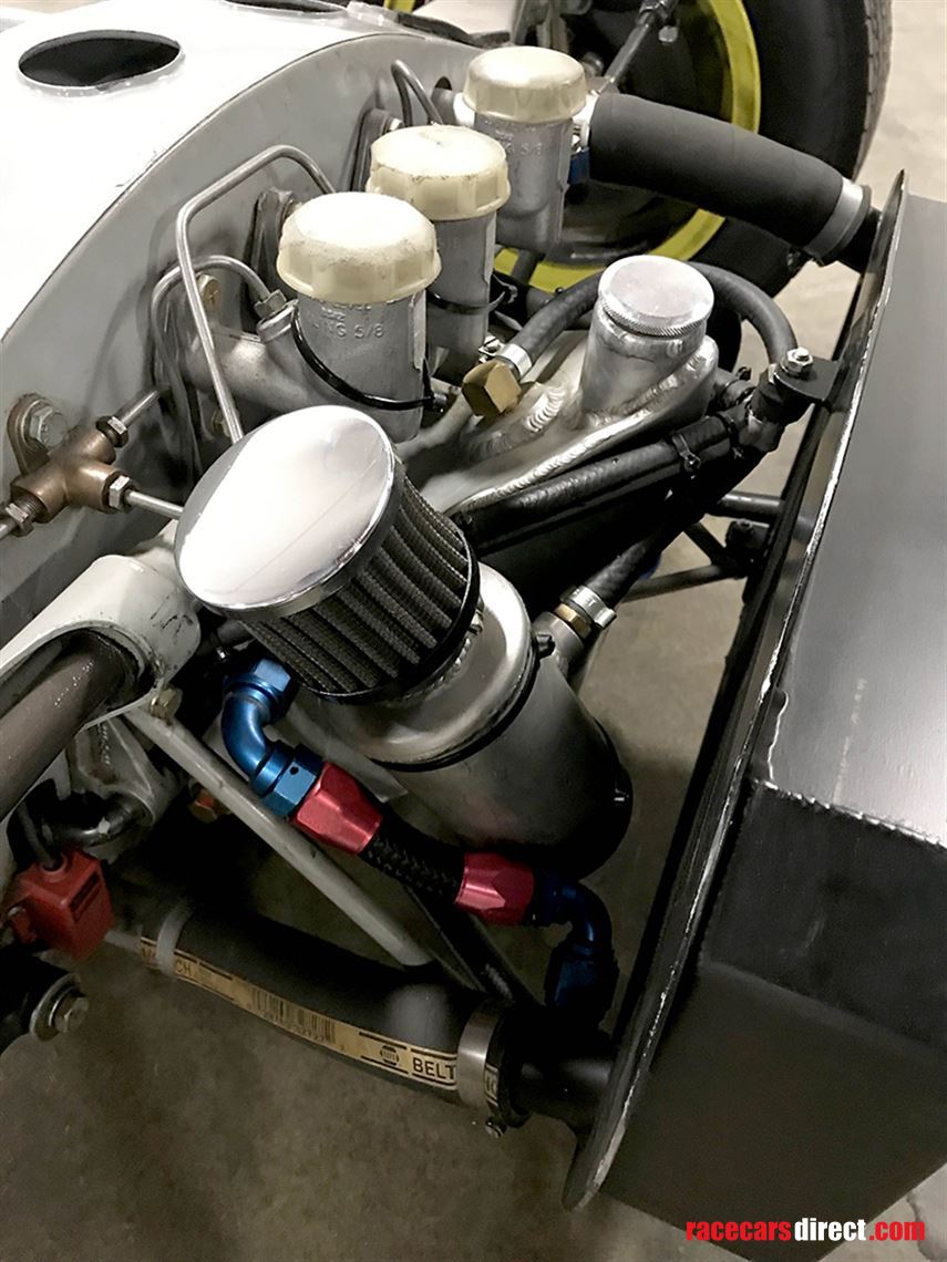 The engine was recently rebuilt and has less than four hours of race time since the rebuild. It is equipped with Richardson head, GRE “torque” cam, lifters and rocker arms, JE pistons, Cosworth rods, ACL bearings, an MSD ignition system including rev limiter, a Pertronix electronic distributor, lightweight gear reduction starter and an LED oil pressure warning system. The engine was broken in and tested on the dyno, where it produced 123 horsepower. Throttle response is excellent and the car starts easily—please see the attached video showing a cold start. The exhaust header is in excellent shape and it includes a silencer and includes a silencer for use at Laguna Seca.