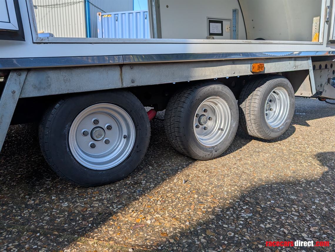 PRICE IS PLUS VAT........TRIPLE AXLE TRAILERTEK GALAXY BY WOODFORD TRAILERS, EXTRA LARGE, HYDRAULIC TILTING, CAR TRANSPORTER TRAILER, CAN FIT A RANGE ROVER IN IT, ELECTRIC WINCH WITH WIRELESS REMOTE CONTROL, ALSO COMES WITH 3 SPARE WHEELS. DVLA REGISTERED FOR COMMERCIAL EUROPEAN TRANSPORT. HAS ONLY HAD LIGHT USE.