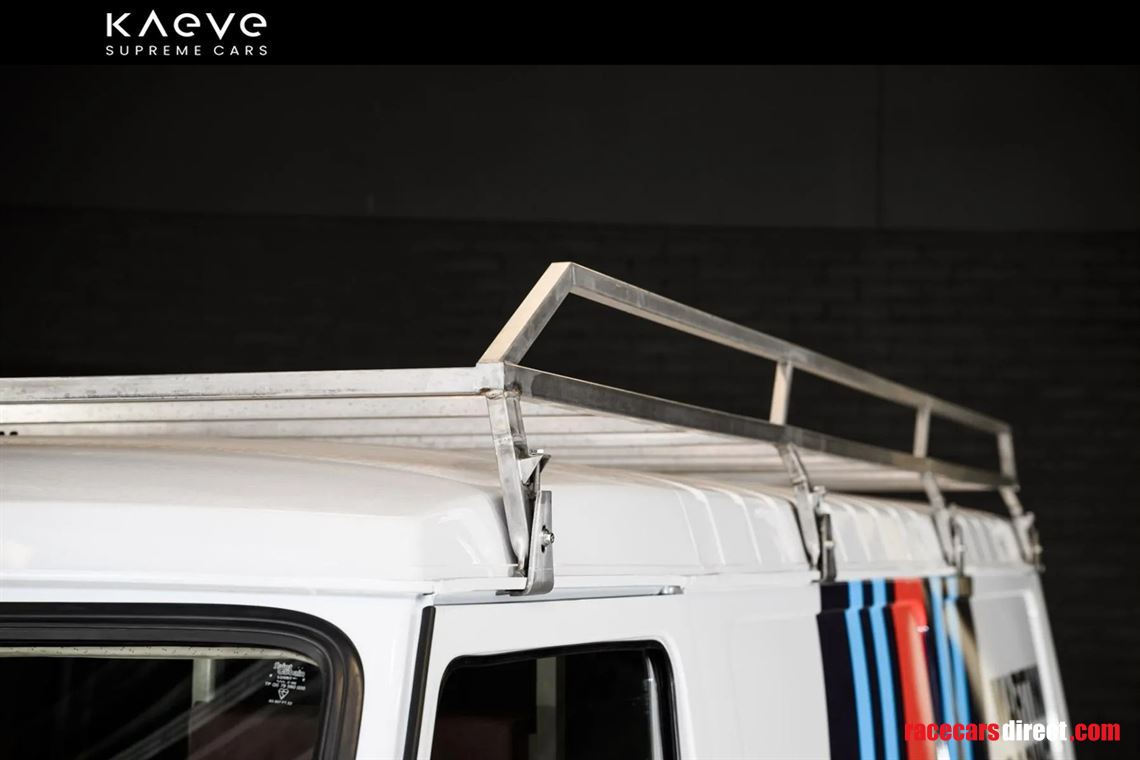 This iconic vehicle is not only a tribute to the legendary Martini Racing team but also a technical masterpiece that has been carefully upgraded. The entire body has been resprayed, as well as the wheels, giving the van a fresh and sleek appearance. The spotlights in the grille not only provide improved lighting but also give the van that tough, sporty look. The roof rack with aluminum storage boxes makes it the ideal companion for rally drivers who want to combine functionality and style.