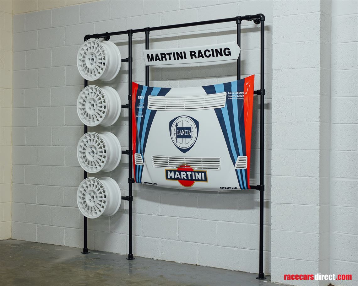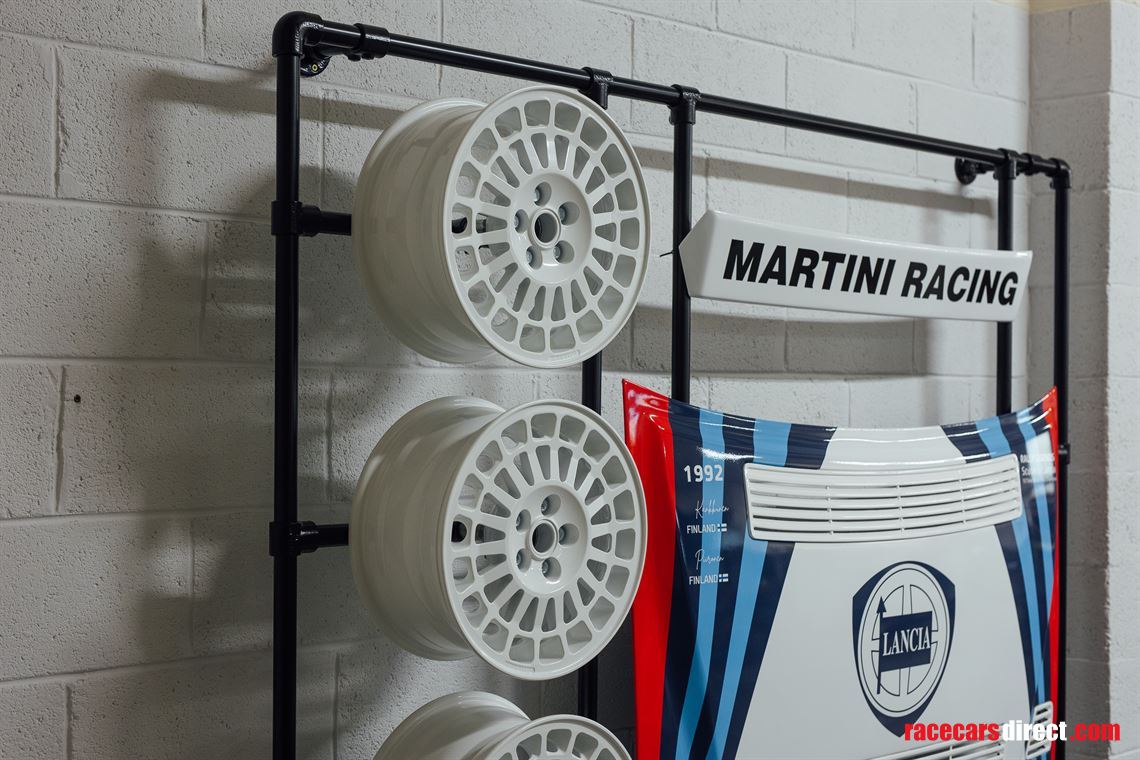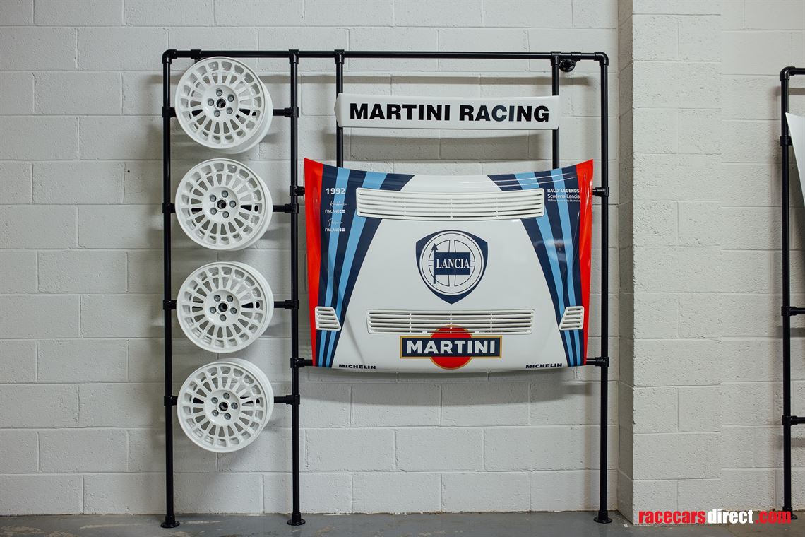 A must for any Scuderia Lancia fan, Evo II owner or trade partner, this striking wall art installation celebrates the dominant force that was Lancia Martini in the 1980s and 1990s. The composite engine lid, legendary high-level boot spoiler and clean Speedline alloys all in period Martini Livery make for an eye catching, one off conversation piece.