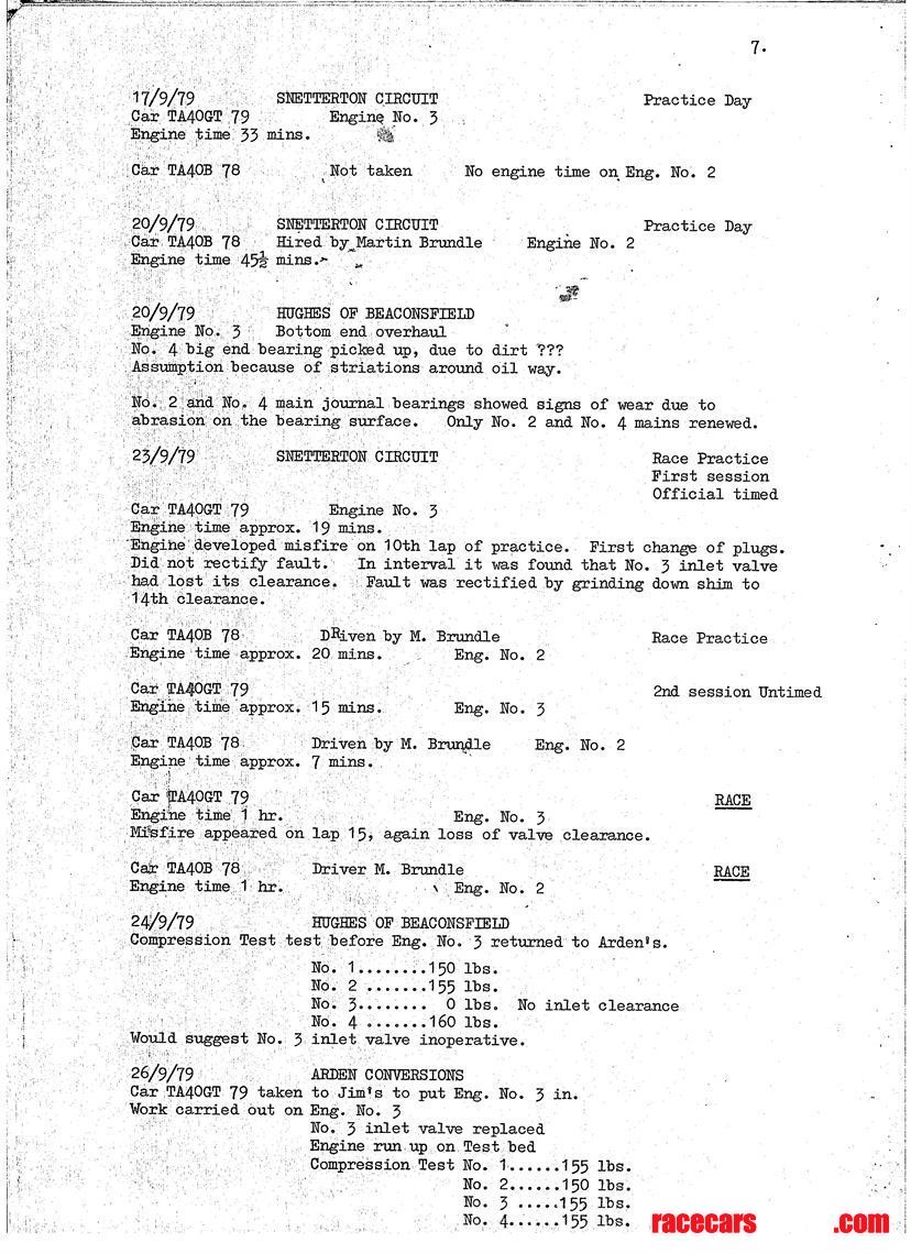 Most of the 1979 and 1980 races and tests are also covered by the team's original type written notes contained within two thick folders. They include detailed race and test data, parts lists, competitor information, regulation changes and entry lists
