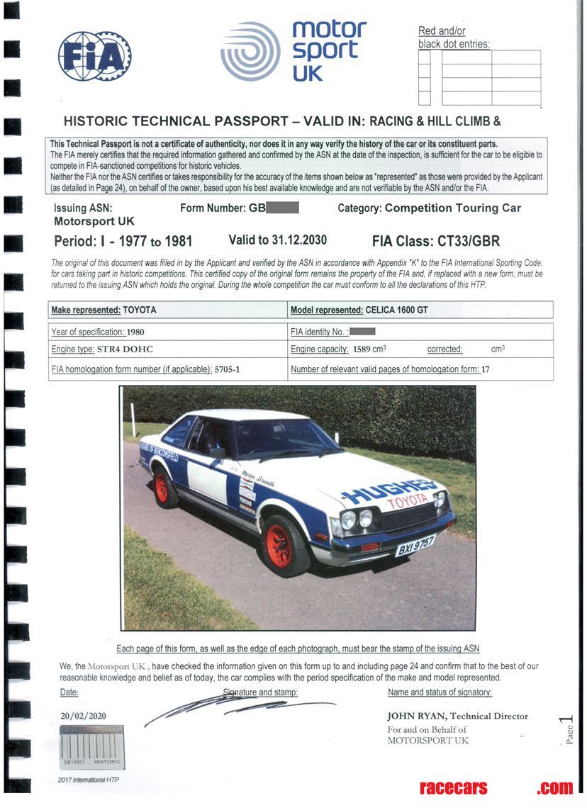 Toyota Celica 1600GT Hughes of Beaconsfield Gp 1½ - SOLD