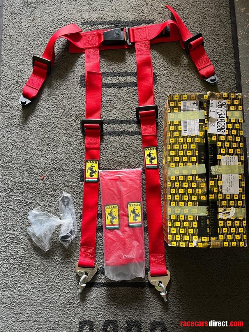 Presented with original box, marked part number 067348200, shoulder pads embossed with the Ferrari Rampante badge and belt fittings. Supplied new by Maranello Egham to Lamborghini Wycombe.