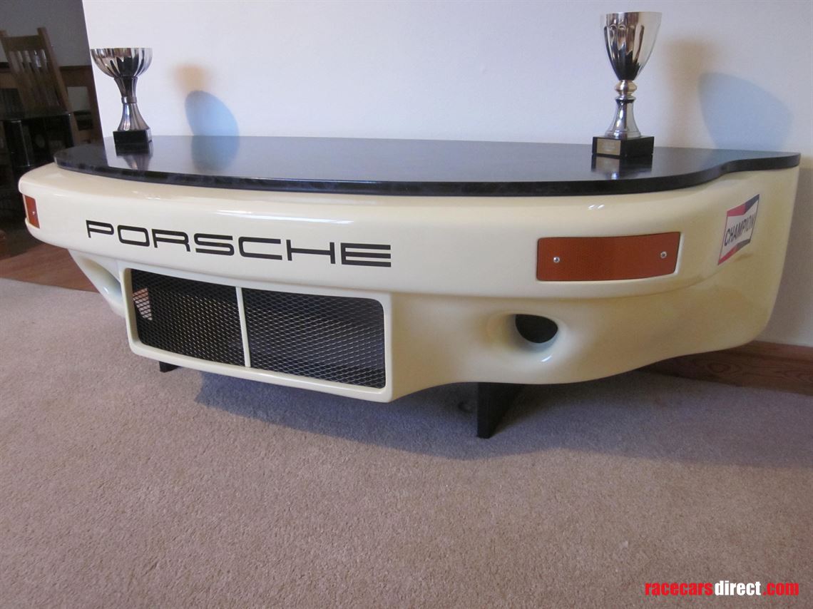 This unique bespoke table pays homage to the 1974 Porsche 911 RSR chassis #9114600100. Finished in a period colour, Sahara Beige, the table has a quartz black top adorned with 'Champion' spark plug decals and Porsche script to the front.