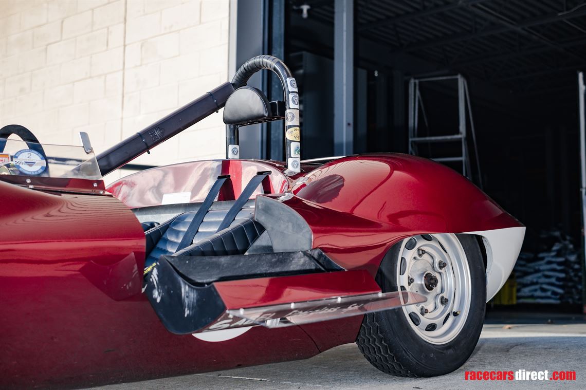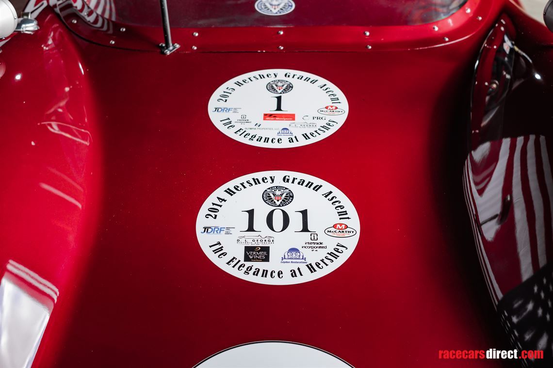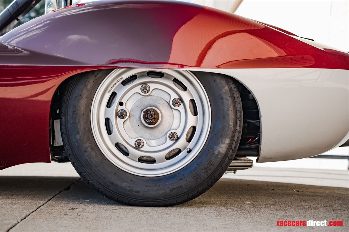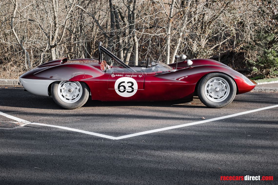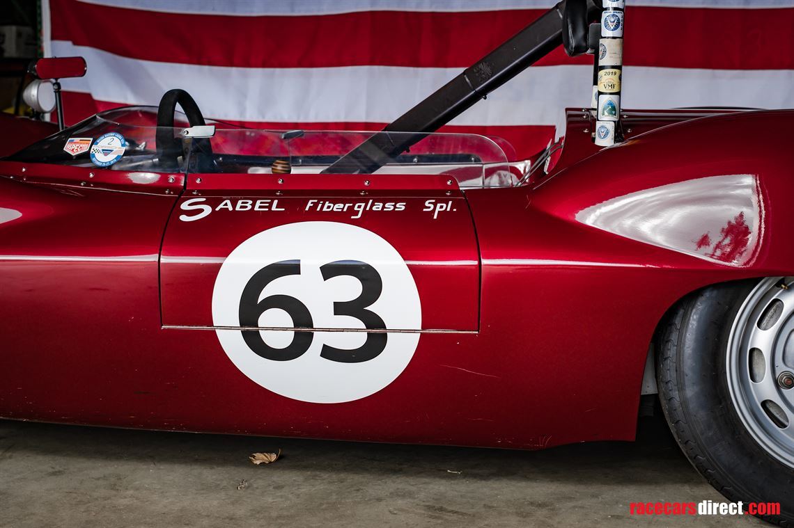 This Porsche-Sabel Mk1 Prototype was the first of approximately 30 cars built by John Sabel beginning in the early 1960's, and was John's personal car. This cars construction was started in the fall of 1963 and completed the following year. Its first race was the 1964 Hershey Hill Climb driven by John and his wife, Pat. John subsequently raced the car that same year at the Duryea Climb. John Sabel (who currently resides in Carlisle, PA) was a car fanatic from way back. He grew up in California and attended races at Monterey and Pebble Beach. He earned enough as a 14 year old mowing lawns to be able to purchase his first car - a Model A Ford road-ster. Subsequent trades ensued, and within a few years he found himself in possession of JoeHuffaker's 1929 Ford Coupe with a hopped up V8 flathead. Joe and John were early members of the Marin Coupe and Roadster Club, which is still in existence today. John designed and built this prototype in a rented garage in Rockville, MD. A male plug made of lathe and plaster was formed around a 1952 stock VW pan. Molds were produced from the plug, and the body was produced in the molds by hand-laminating fiberglass. The molds were subsequently shipped to Anderson Industries in Jessup, MD, who produced approximately 20 more of these cars. John went on to build several more Mk 2 and Mk 3 cars - the Mk3s were mid-engined cam-back cars. Two known examples of these are still being actively raced. Though the floor pan started out as stock, the rest of the car was developed with Porsche parts: Porsche front & rear suspension, brakes, gearbox, and motor (from the 356b plat-form). This car ran with a set of 550 Spyder wheels; the wheel wells were designed around these. It was in this configuration that the car ran in the 1964 Hershey climb. In 1966 John sold the car to Ralph Williams. Ralph accumulated enough points in the SCCA Northeast region to qualify for The American Road Race of Champions (the SCCA Championships) at Daytona in 1967. He placed 2nd in DSR and 5th overall. The car was sold in 1968 to Dick Williams (no relation) who raced the car extensively. Documented races included runs at VIR, Marlboro, and Cumberland. Dick and the Sabel also qualified for the SCCA runoffs in 1969, but he was unable to attend. Dick really loved the car and told me on several occasions how he could "go really deep because the brakes were so darn good!" The car did very well on short tracks for this reason though it was usually outrun on the longer circuits by the more powerful cars. In 1970 the car was sold to Gordon Kerr, a dentist in Manassas VA. Unfortunately, life got in the way and the car sat, essentially unused, for 34 years. A young car nut, Sean Kalil, got wind of the car and purchased it in 2004. Sean replaced the floor pans, but an illness in the family halted the project. The car was purchased in 2005 by IMSA driver Chuck Goldsborough of Team Lexus fame. Chuck's intent from the start was to restore it but with too many other Porsche projects in progress it waited in line. In 2012, after a year of pestering, Goldsborough passed the Sabel to his friend Michael Ballo who immediately started on a restoration. In 2012, an extensive restoration to its original configuration and livery was performed by Peter Dawe of Dawe's Motorsports, Stroudsburg, PA. under the supervision of John Sabel. In 2014, 50 years after its debut, the prototype Porsche-Sabel was reunited with its designerbuilder-original driver for a climb up the hill at the 2014 Hershey Hillclimb.