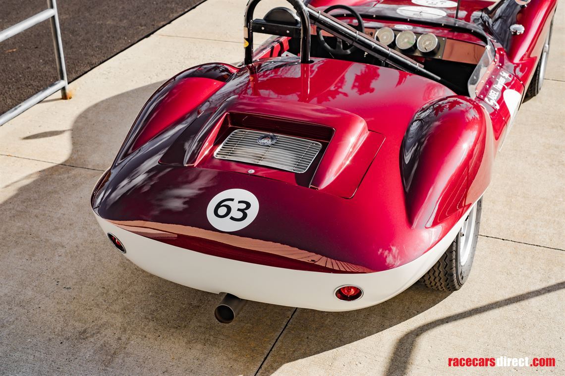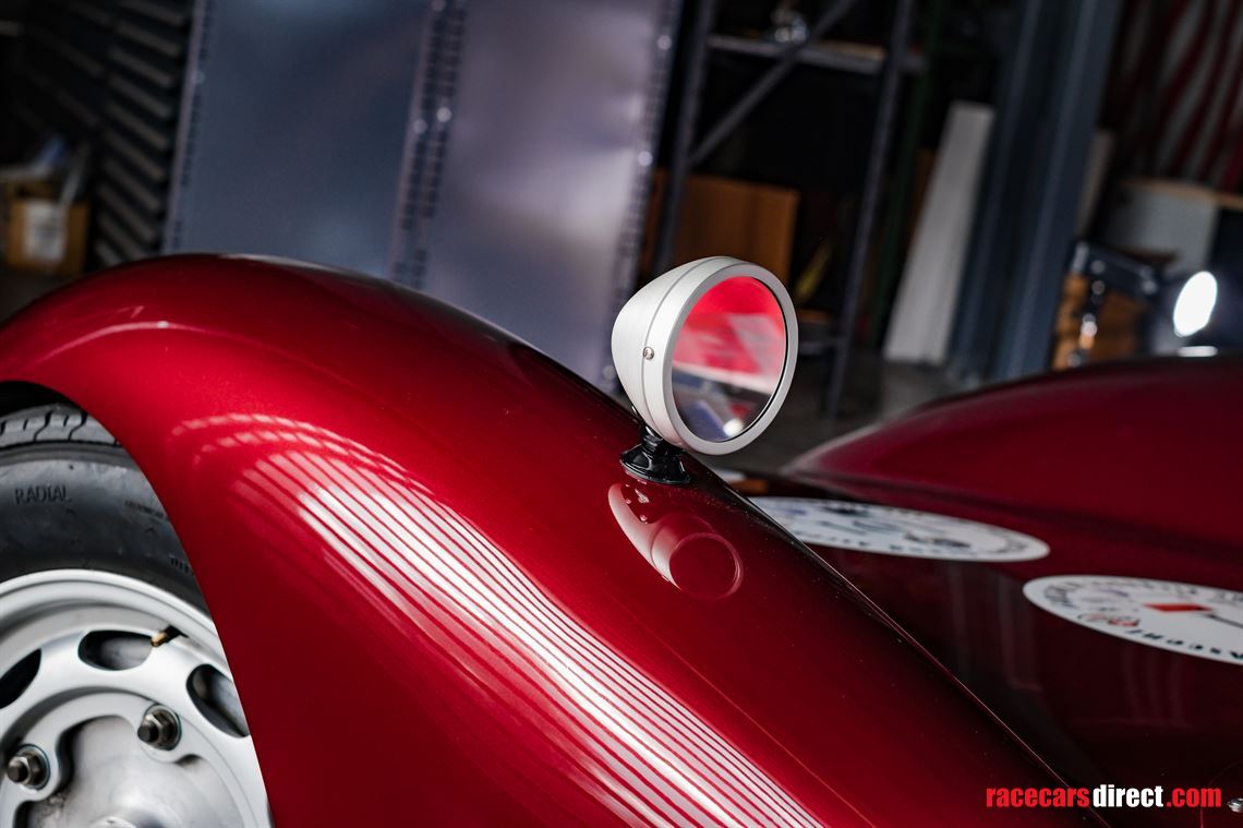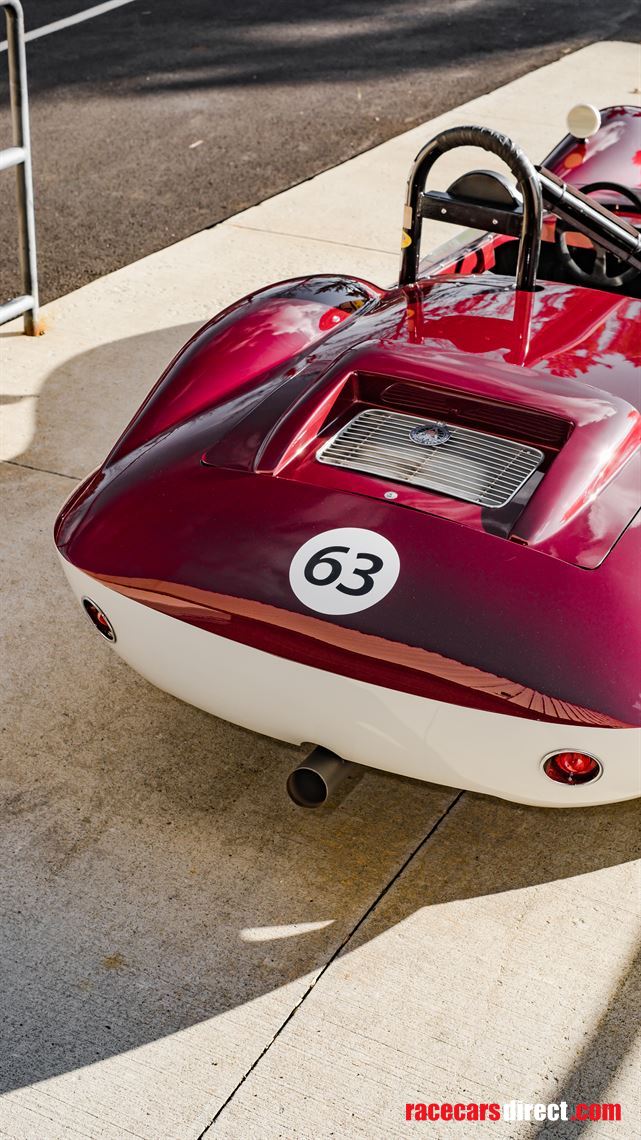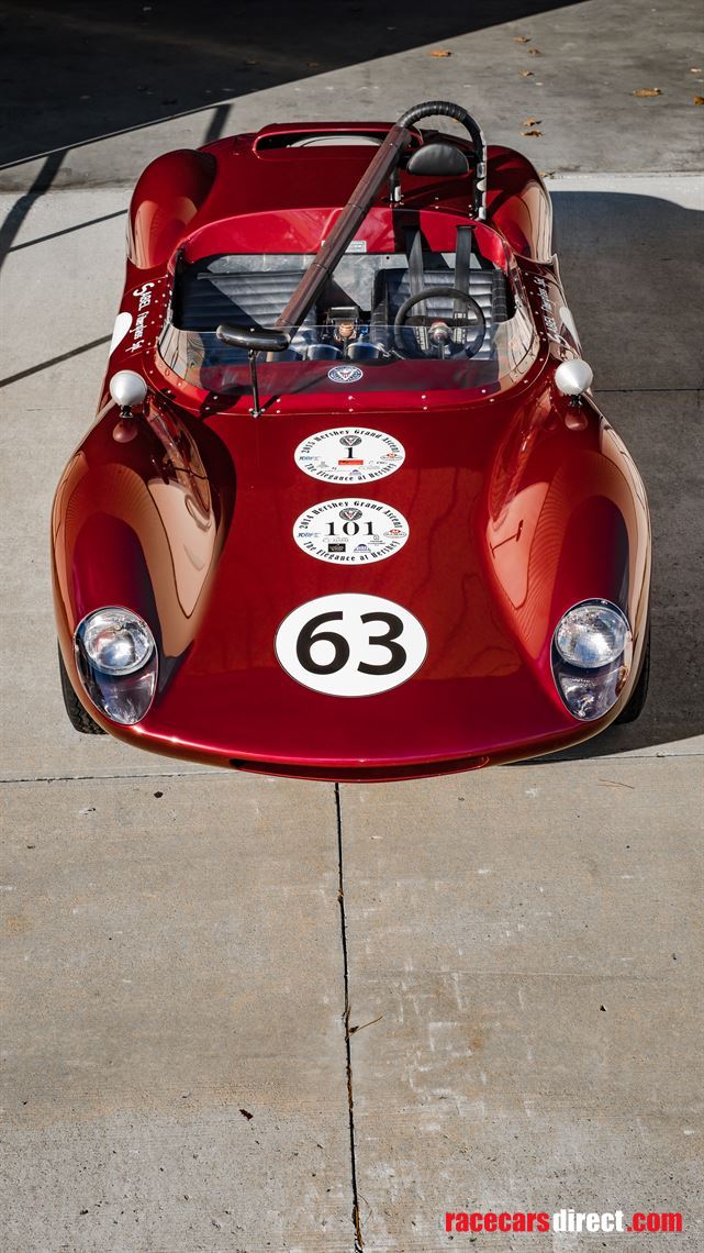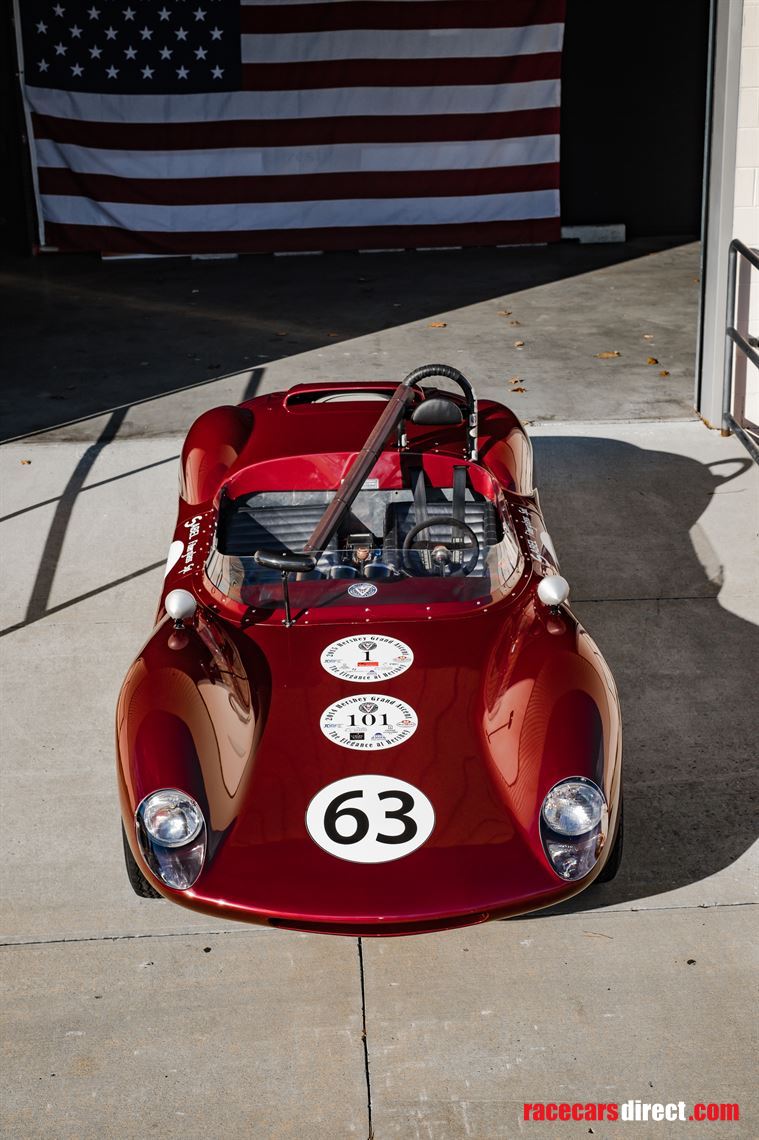 This Porsche-Sabel Mk1 Prototype was the first of approximately 30 cars built by John Sabel beginning in the early 1960's, and was John's personal car. This cars construction was started in the fall of 1963 and completed the following year. Its first race was the 1964 Hershey Hill Climb driven by John and his wife, Pat. John subsequently raced the car that same year at the Duryea Climb. John Sabel (who currently resides in Carlisle, PA) was a car fanatic from way back. He grew up in California and attended races at Monterey and Pebble Beach. He earned enough as a 14 year old mowing lawns to be able to purchase his first car - a Model A Ford road-ster. Subsequent trades ensued, and within a few years he found himself in possession of JoeHuffaker's 1929 Ford Coupe with a hopped up V8 flathead. Joe and John were early members of the Marin Coupe and Roadster Club, which is still in existence today. John designed and built this prototype in a rented garage in Rockville, MD. A male plug made of lathe and plaster was formed around a 1952 stock VW pan. Molds were produced from the plug, and the body was produced in the molds by hand-laminating fiberglass. The molds were subsequently shipped to Anderson Industries in Jessup, MD, who produced approximately 20 more of these cars. John went on to build several more Mk 2 and Mk 3 cars - the Mk3s were mid-engined cam-back cars. Two known examples of these are still being actively raced. Though the floor pan started out as stock, the rest of the car was developed with Porsche parts: Porsche front & rear suspension, brakes, gearbox, and motor (from the 356b plat-form). This car ran with a set of 550 Spyder wheels; the wheel wells were designed around these. It was in this configuration that the car ran in the 1964 Hershey climb. In 1966 John sold the car to Ralph Williams. Ralph accumulated enough points in the SCCA Northeast region to qualify for The American Road Race of Champions (the SCCA Championships) at Daytona in 1967. He placed 2nd in DSR and 5th overall. The car was sold in 1968 to Dick Williams (no relation) who raced the car extensively. Documented races included runs at VIR, Marlboro, and Cumberland. Dick and the Sabel also qualified for the SCCA runoffs in 1969, but he was unable to attend. Dick really loved the car and told me on several occasions how he could "go really deep because the brakes were so darn good!" The car did very well on short tracks for this reason though it was usually outrun on the longer circuits by the more powerful cars. In 1970 the car was sold to Gordon Kerr, a dentist in Manassas VA. Unfortunately, life got in the way and the car sat, essentially unused, for 34 years. A young car nut, Sean Kalil, got wind of the car and purchased it in 2004. Sean replaced the floor pans, but an illness in the family halted the project. The car was purchased in 2005 by IMSA driver Chuck Goldsborough of Team Lexus fame. Chuck's intent from the start was to restore it but with too many other Porsche projects in progress it waited in line. In 2012, after a year of pestering, Goldsborough passed the Sabel to his friend Michael Ballo who immediately started on a restoration. In 2012, an extensive restoration to its original configuration and livery was performed by Peter Dawe of Dawe's Motorsports, Stroudsburg, PA. under the supervision of John Sabel. In 2014, 50 years after its debut, the prototype Porsche-Sabel was reunited with its designerbuilder-original driver for a climb up the hill at the 2014 Hershey Hillclimb.