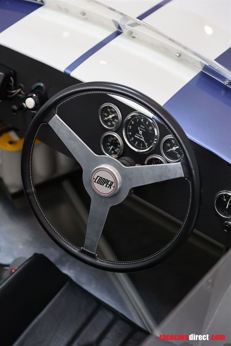 History: Carroll Shelby purchased the successful Cooper T6I sports racing chassis with a Peter Brock designed full aluminum body and modified it to fit the Ford 289 V8, to be raced in the USRRC Series. CM/5/64 was Raced by Bob Bondurant at the 1964 Los Angeles Times Grand Prix at Riverside International Raceway, finishing in 5th place. Two weeks later, Bondurant raced CM/5/64 in the Monterey Grand Prix at Laguna Seca, finishing in 3rd place overall. Carroll Shelby then sent CM/5/64 to Ford Advance Vehicles in England for Roy Salvadori to race with factory support at Silverstone and Goodwood. At the end of the 1965 season, it was returned to Shelby American. In 1966 it was sold to James Brown, who raced it in various East and Midwest SCCA regional and National events with several 1st place finishes. After being in the care of a series of well-known Shelby collectors and a receiving a stunning restoration, this famous Shelby King Cobra Team car is now for sale.