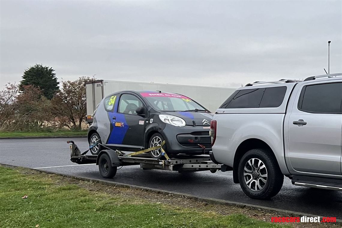 For sale is my Citroen C1 Cup car which was last raced in the 2024 SMRC C1 Cup. The shell has the usual dents but is in overall good shape, and the engine has always kept up with the field. Car will come with 6 Team Dynamics alloys. The trailer is available for an extra £1000. Car is located in Moray, Scotland and can be delivered for a negotiable amount. Belts in date till 2027, extinguisghers first service due Jan 2026.